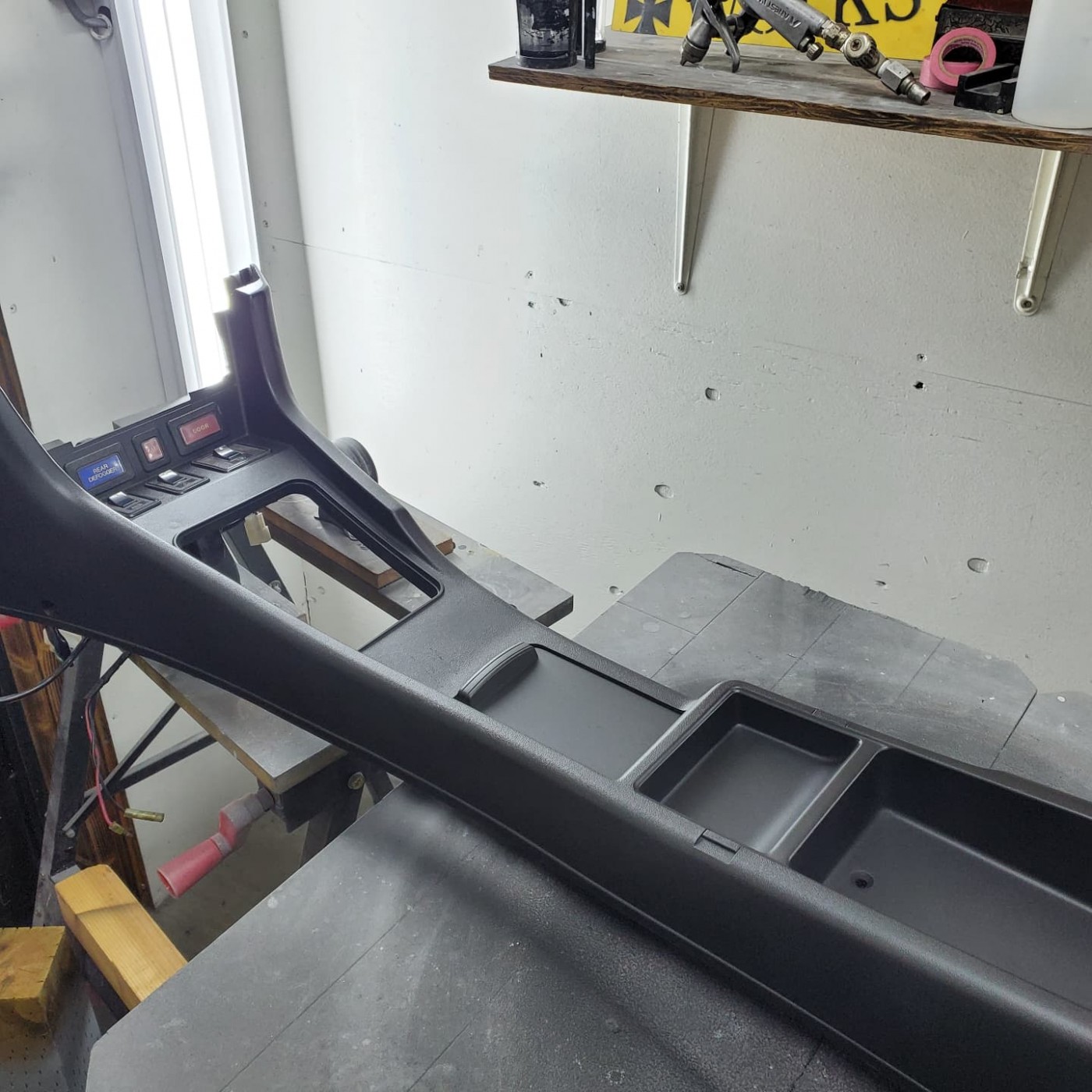 板金塗装会社様よりレストア中の旧車のダッシュボードとセンターコンソールのひび割れ、穴開き、擦り傷等の修復のご依頼をいただきました。
