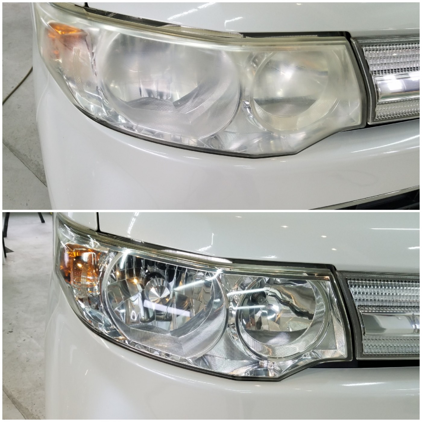 ヘッドライトの黄ばみ、くすみをしっかりとサンディングして磨き上げ