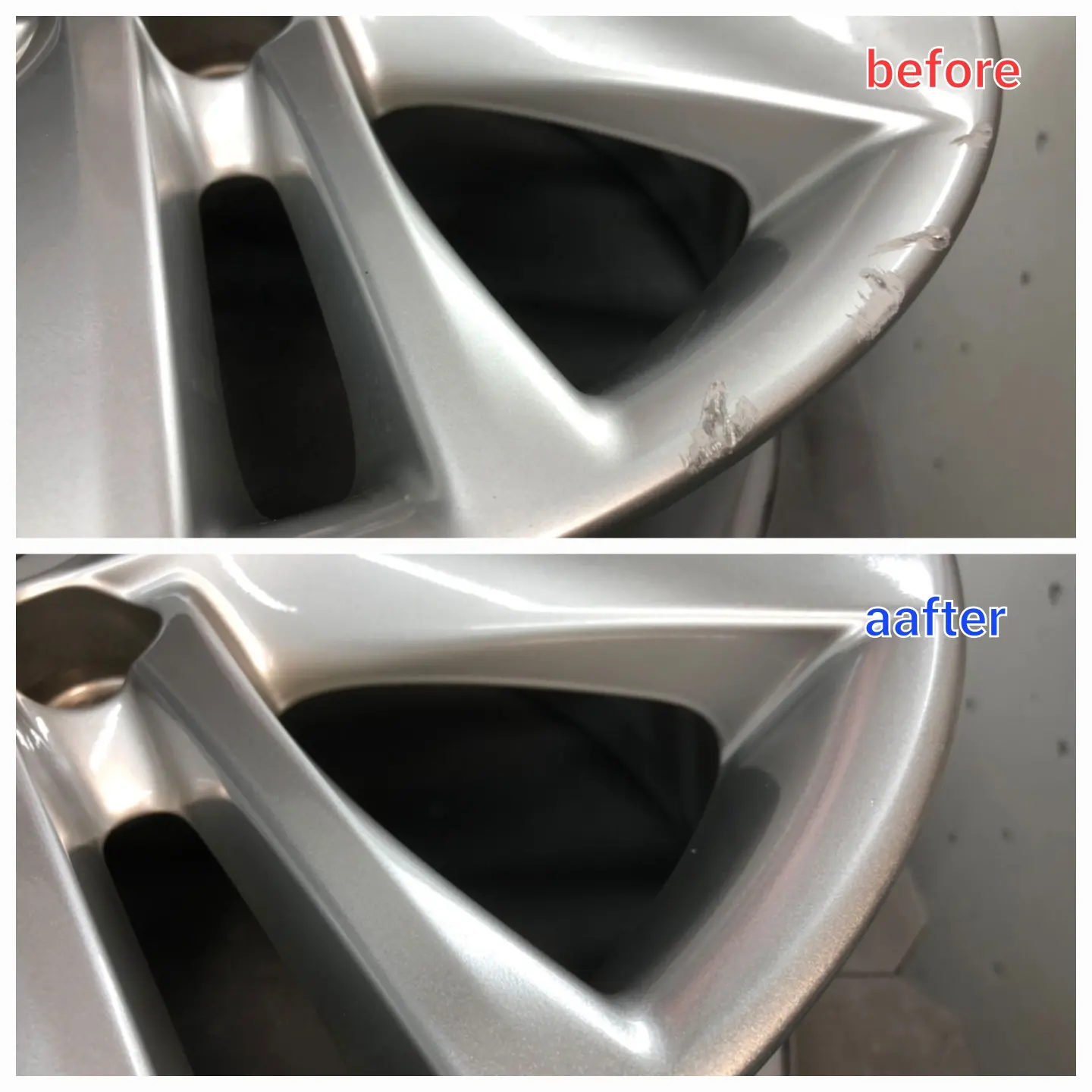 縁石に寄せすぎてガリ傷を付けてしまった客様からのご依頼で、レクサス純正のハイパーシルバー色のがり傷のリペアをご依頼いただきました。