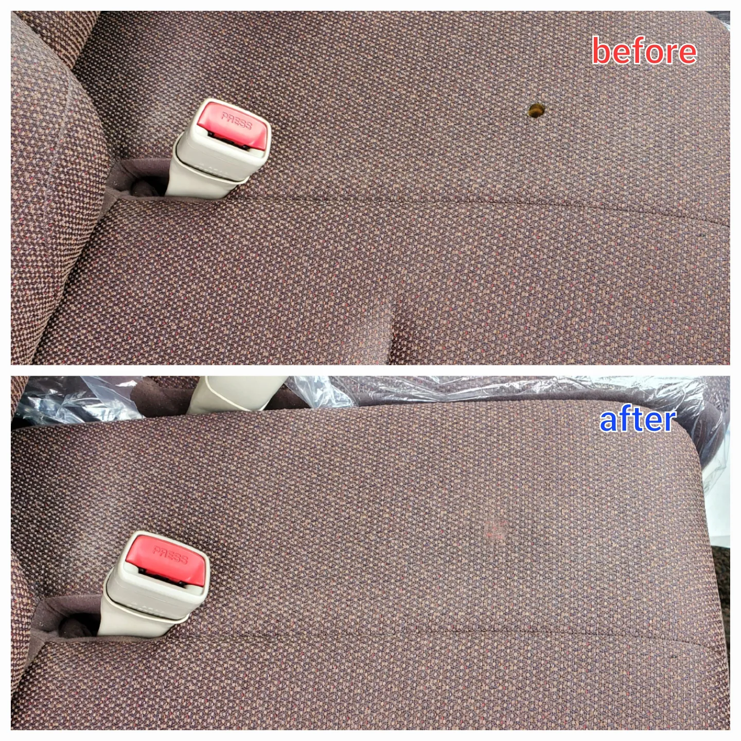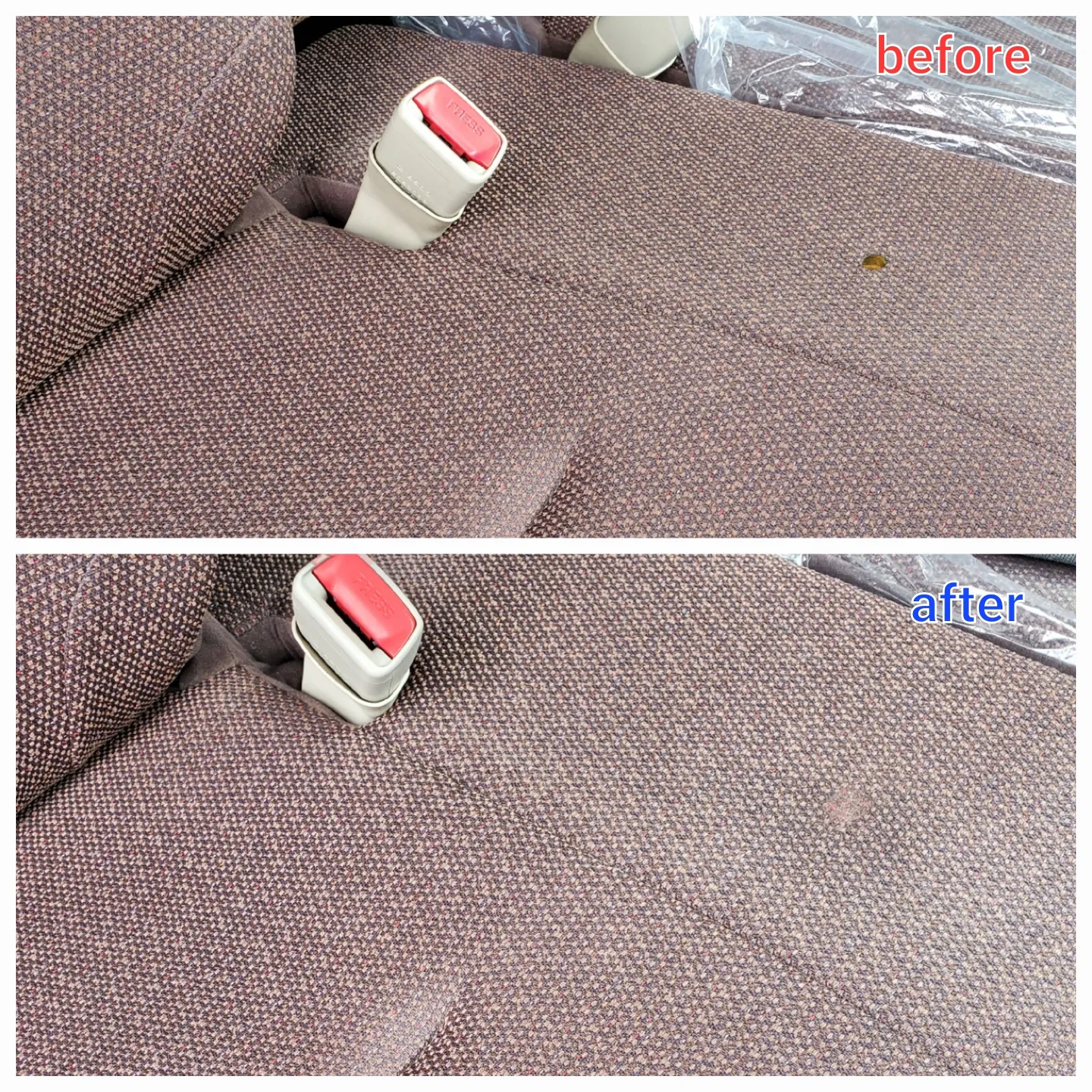 タバコの火を落としてしまいシートに焦げ穴が出来てしまってお困りのお客様よりご依頼をいただきました。
