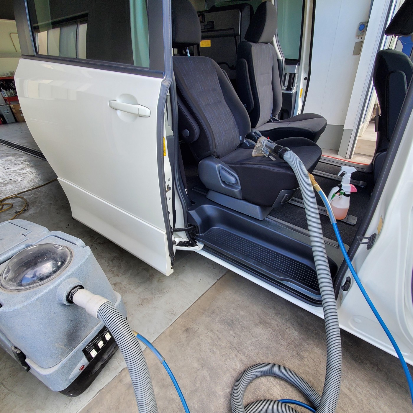 シートやフロアカーペットの食べこぼし、飲みこぼしによるシミ汚れタバコのヤニ汚れをスチームリンサーで綺麗にクリーニング!