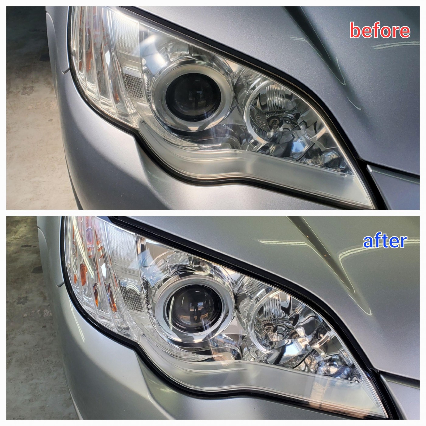 表面のハードコートをサンディングして黄ばみ、くすみ、細かな擦り傷をしっかりと除去してから磨き仕上げ、最後に皮膜材を塗り込んで施工完了!