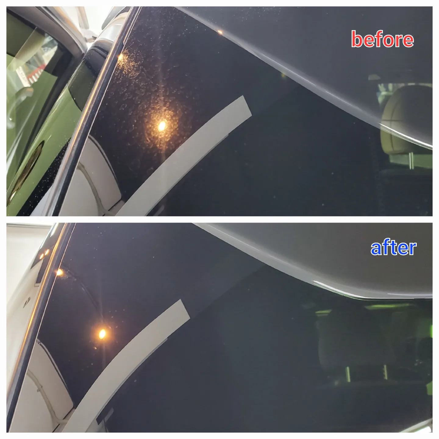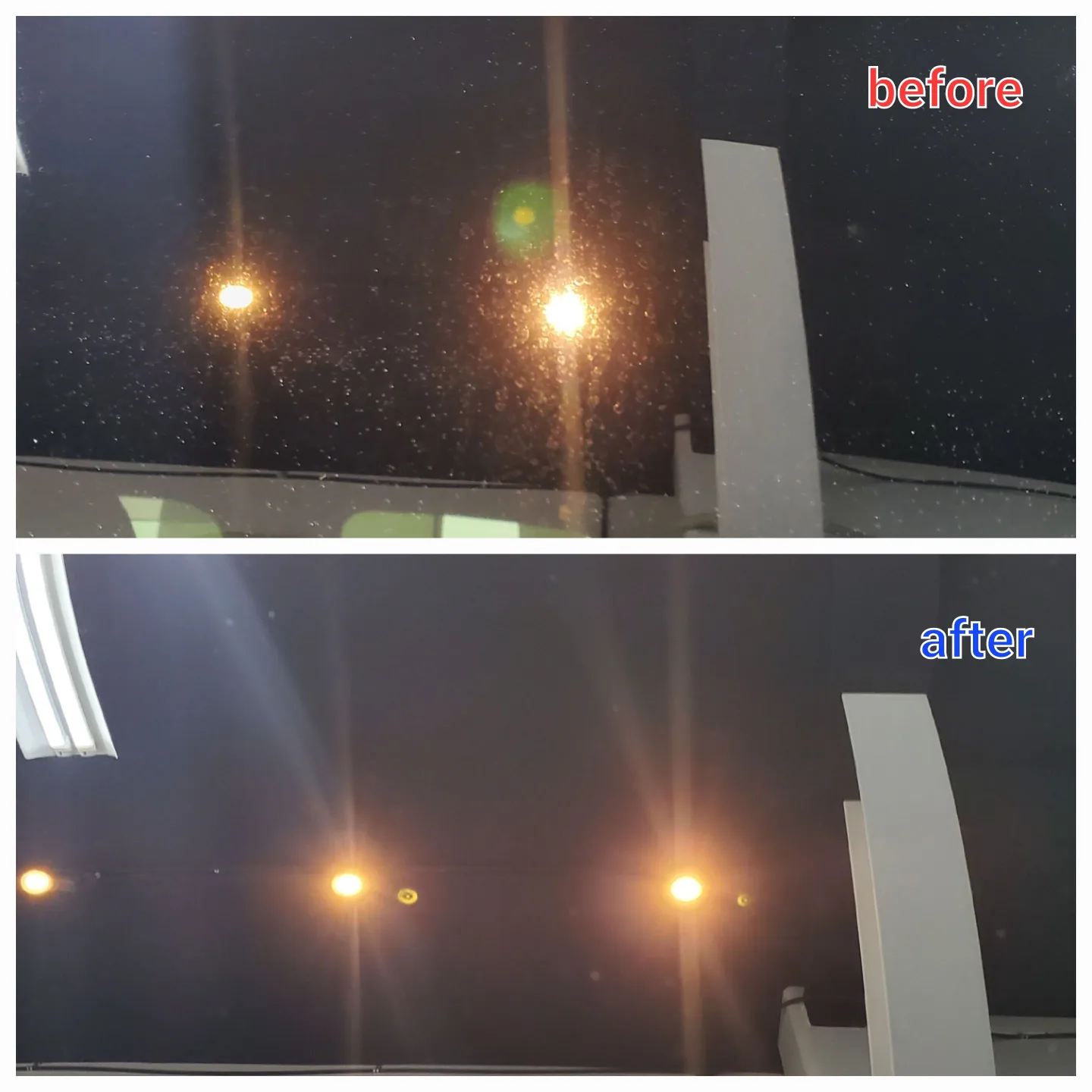 最後に車内を隅々クリーニングとガラスのウロコを綺麗に除去して施工完了。