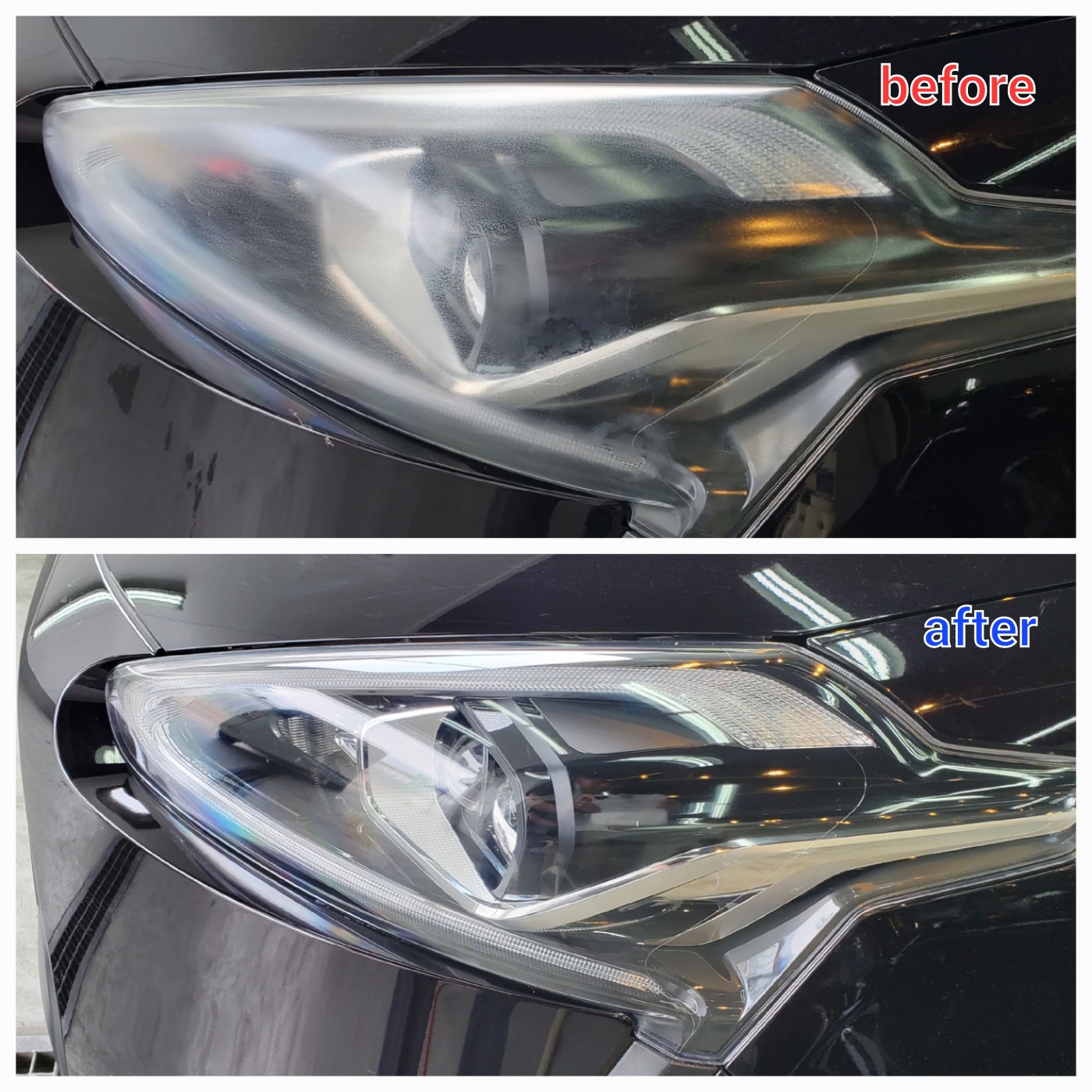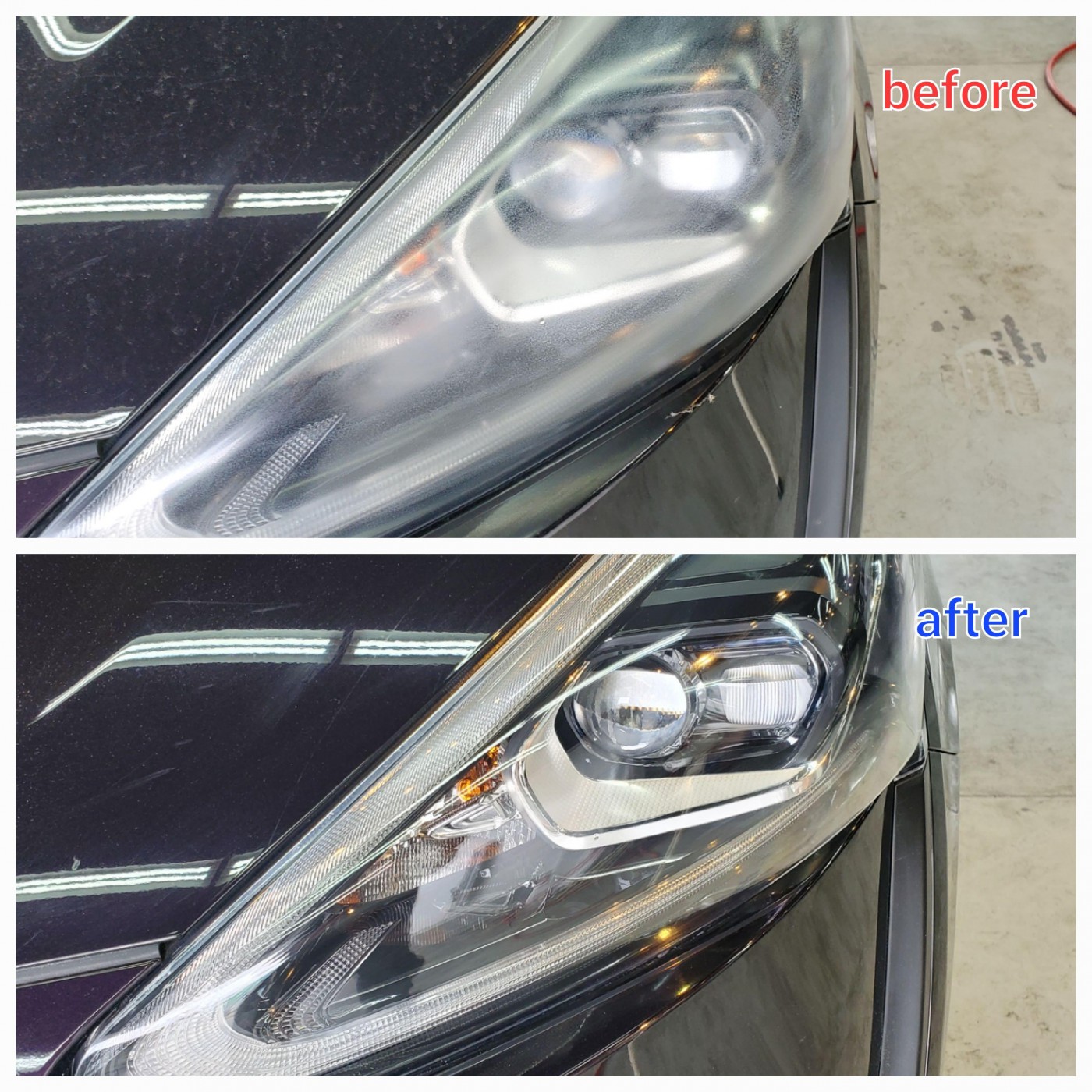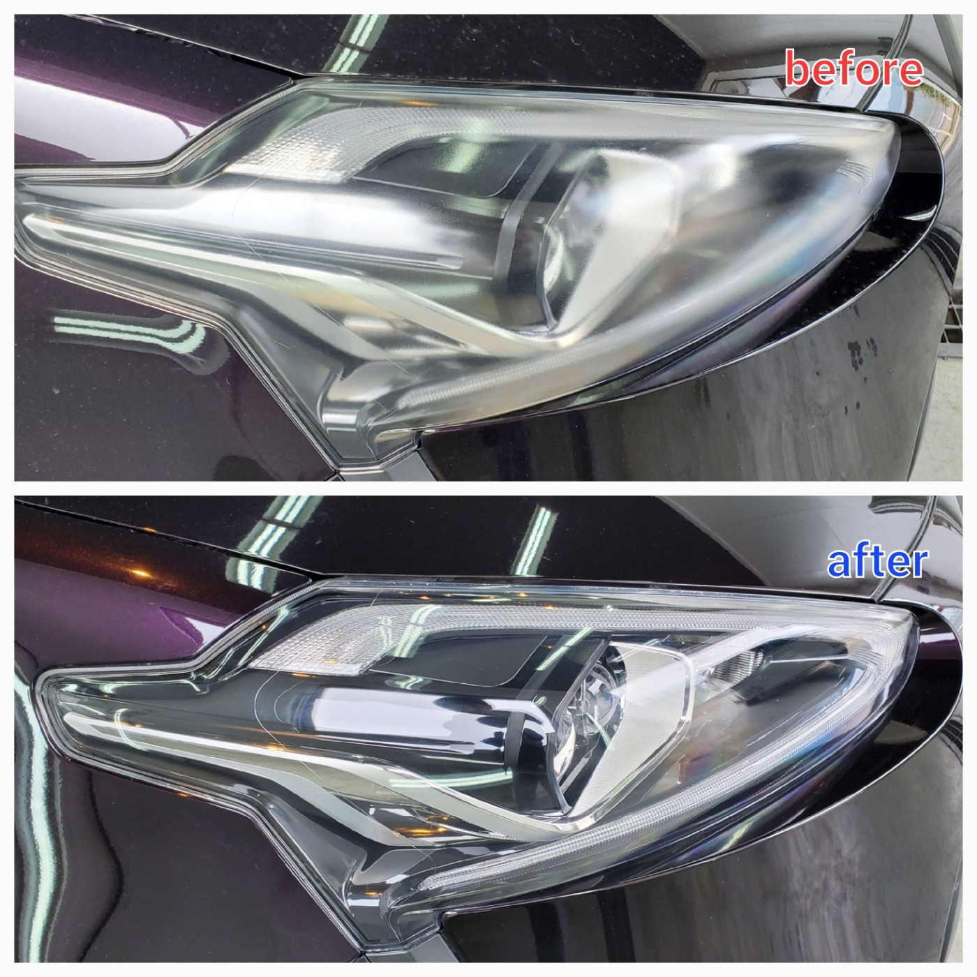 透明感が復活したヘッドライトを見たオーナー様より、仕上がりをとても喜んでいただきました。