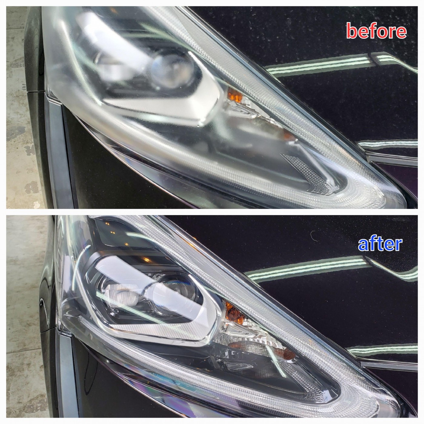 表面のハードコートをサンディングして黄ばみ、くすみ、細かな擦り傷をしっかりと除去してから磨き仕上げ、最後に皮膜材を塗り込んで施工完了!