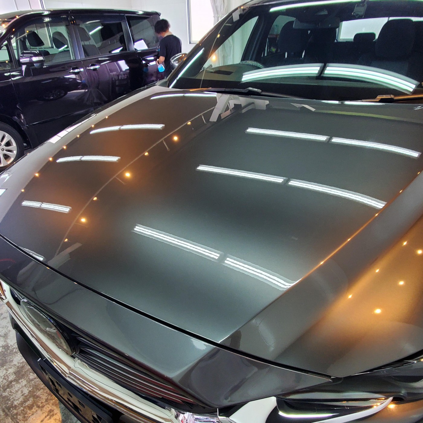 ボディークレンジングからの磨き上げとTAIMA(コーティング結合研磨液)にて下地処理を‎‎しっかりとしてボディーについた傷や洗車傷などをリセットし、ガラスコーティングのグロスアーマーを塗り込みして施工完了! ‎