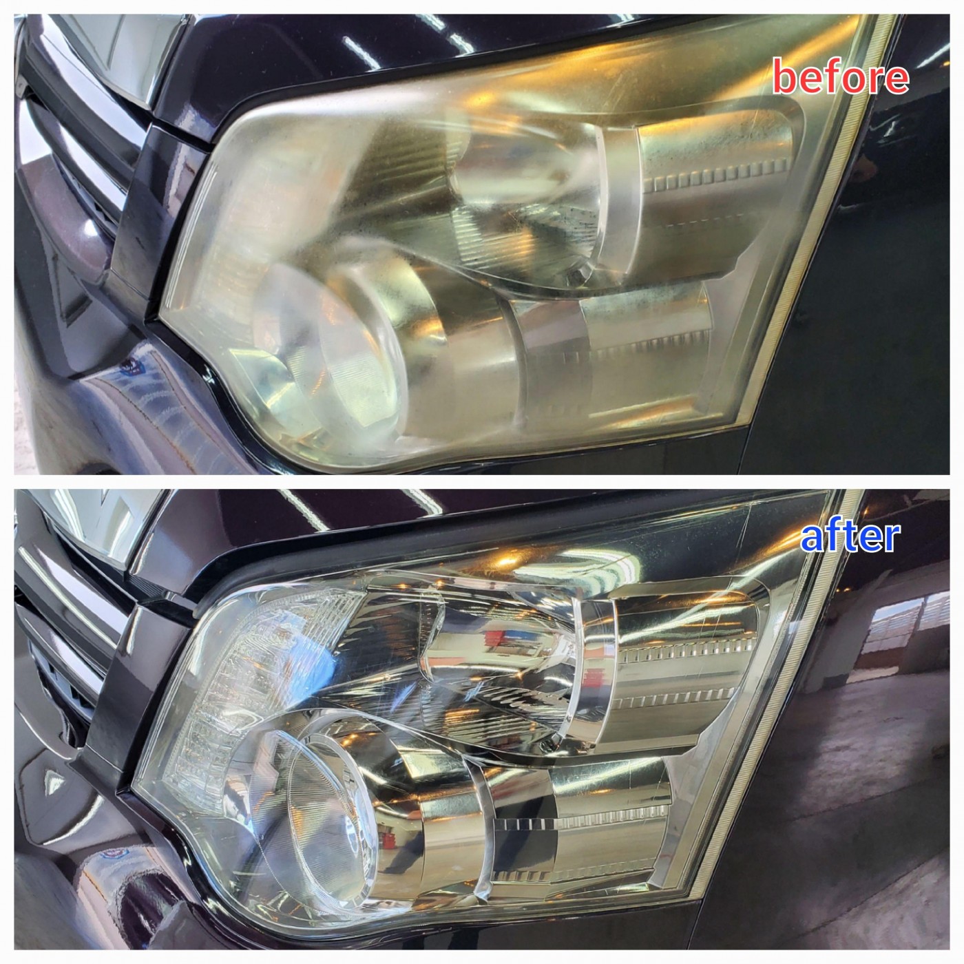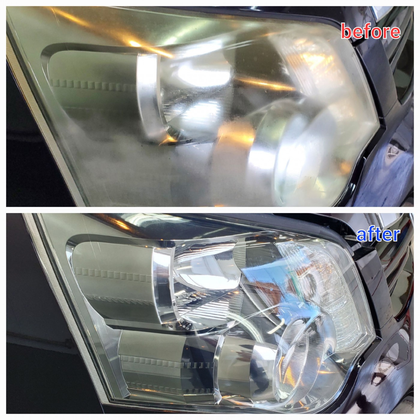 ヘッドライトの黄ばみ、白ボケ、細かな傷等で困りのお客様よりご依頼をいただきました。