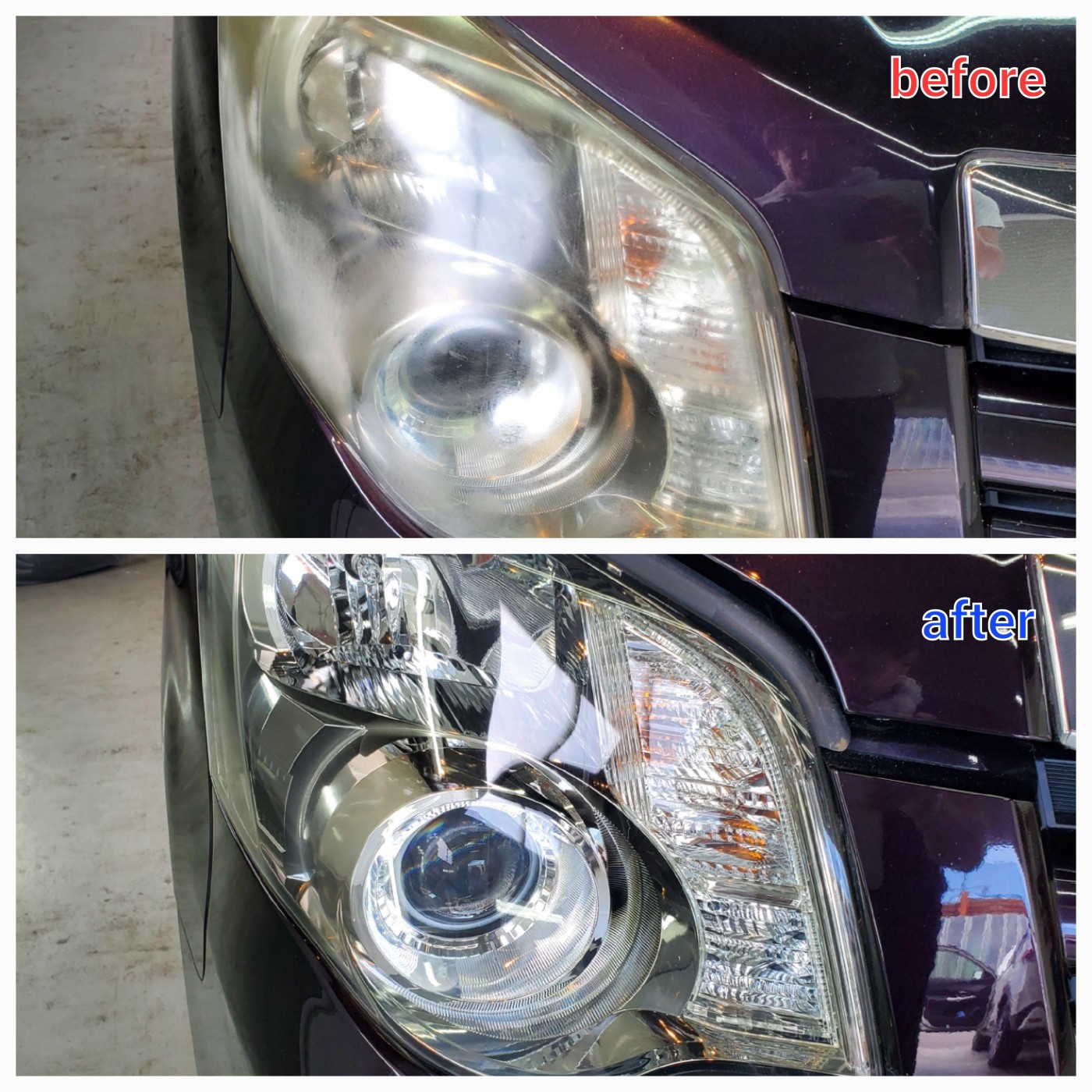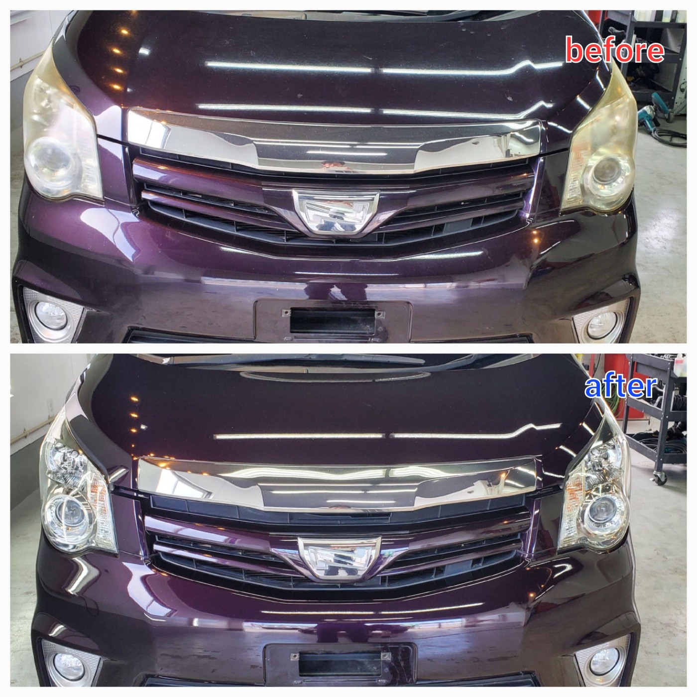 透明感が復活したヘッドライトを見たオーナー様より、仕上がりをとても喜んでいただきました。