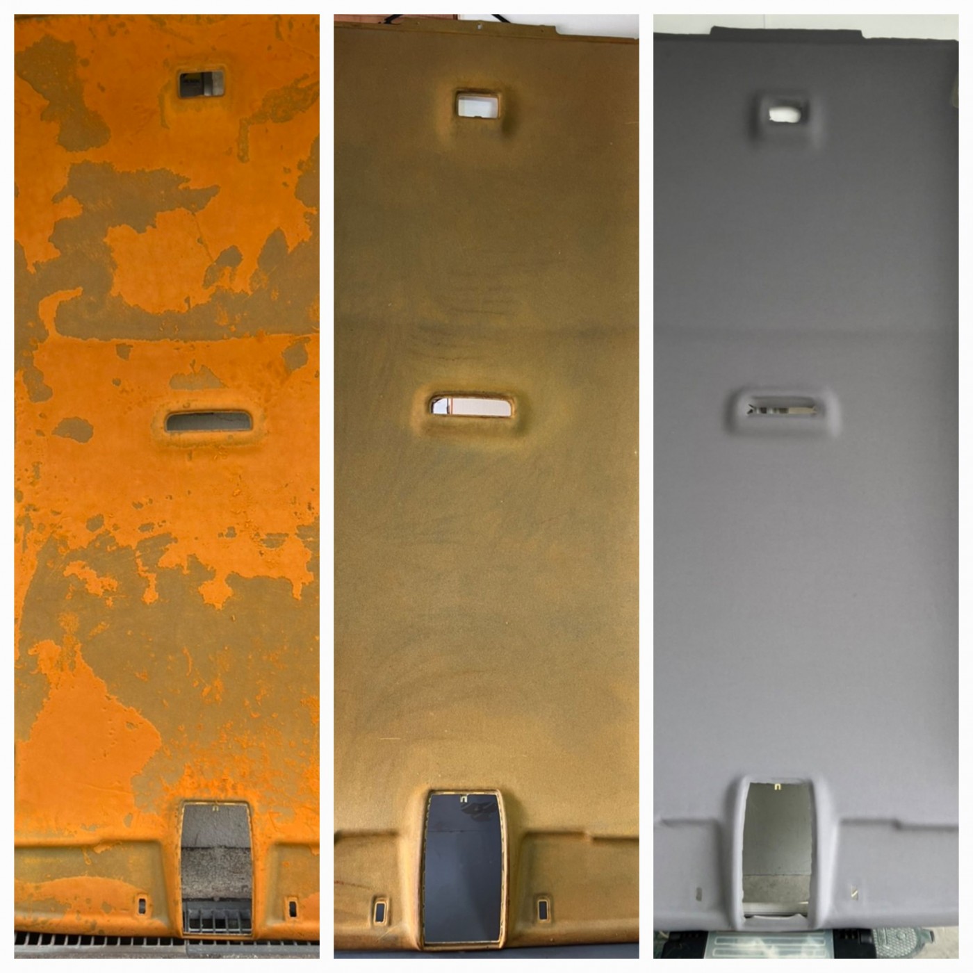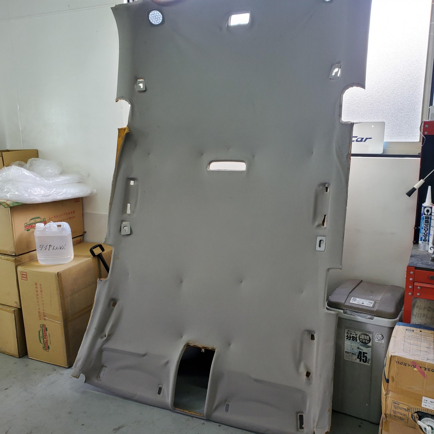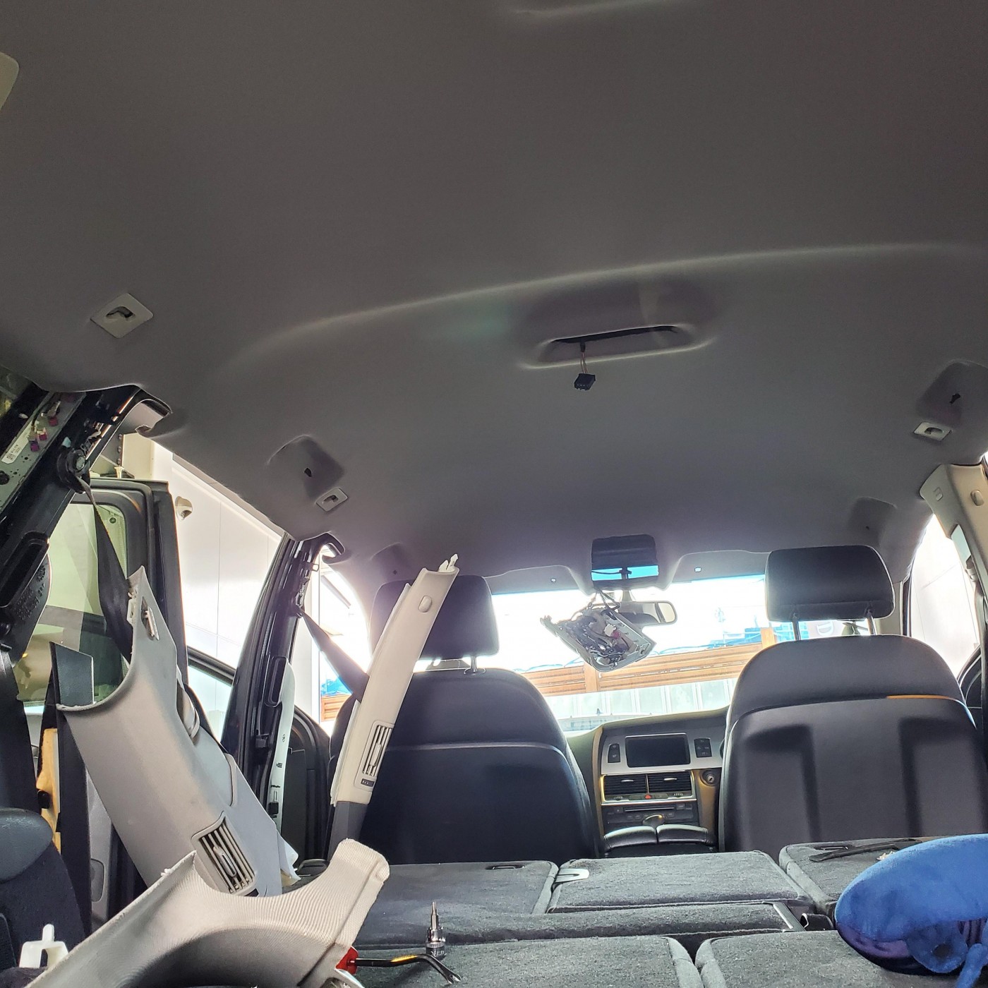 輸入車に多いルーフライニング剥がれのため、張替えのご依頼をいただき施工させて頂きました。