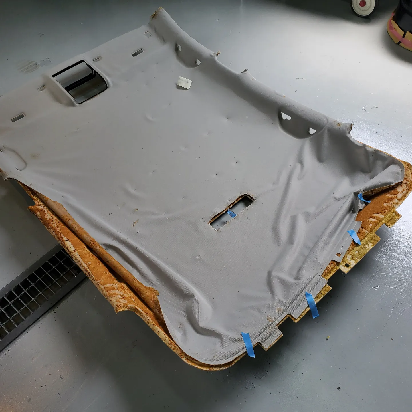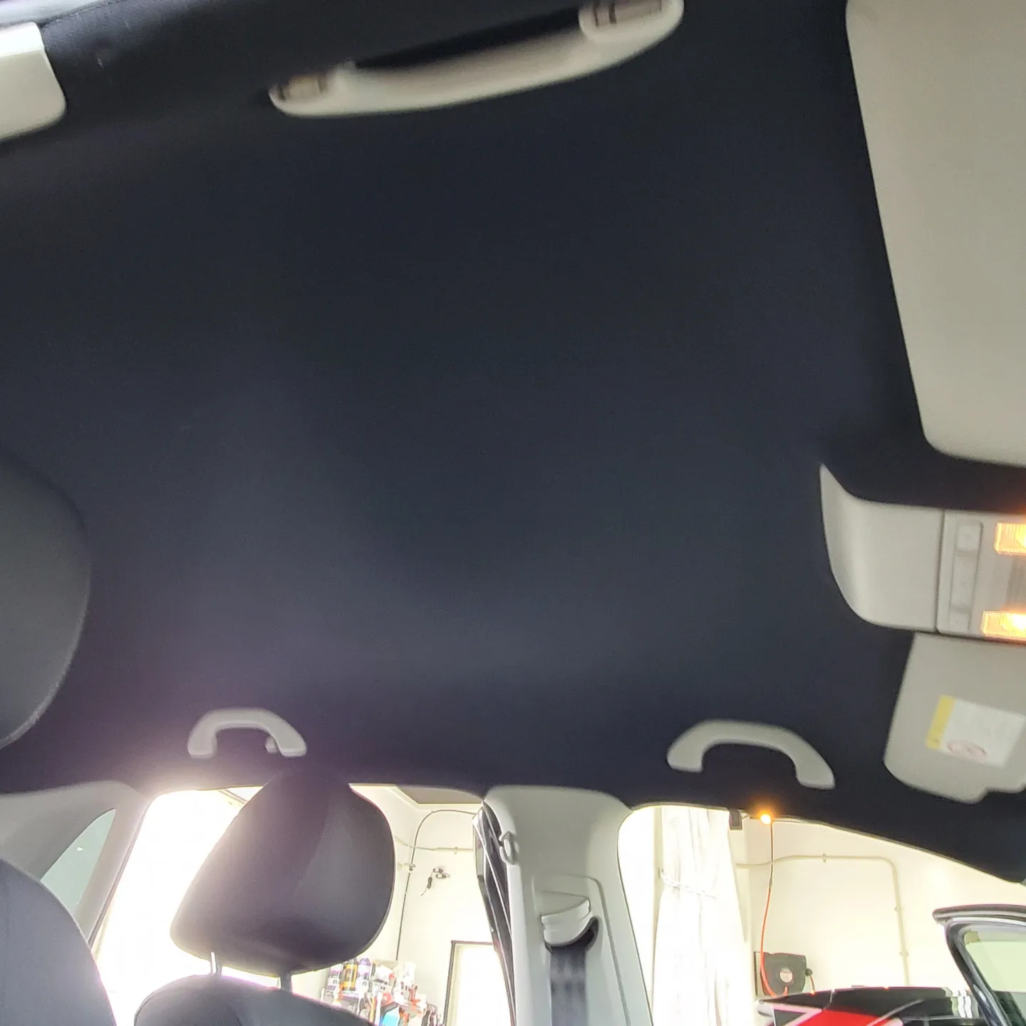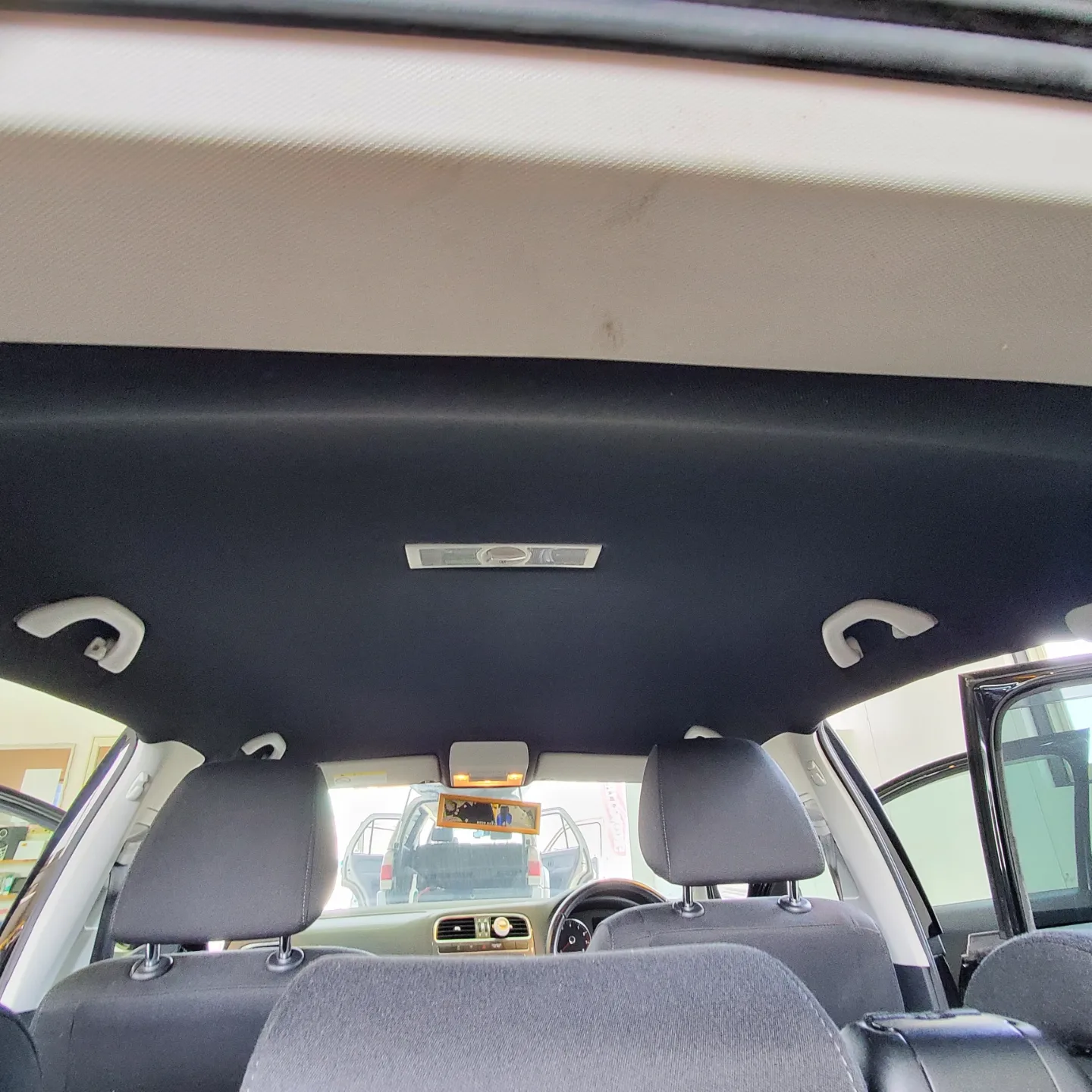 輸入車に多いルーフライニング剥がれのため、張替えのご依頼をいただき施工させて頂きました。