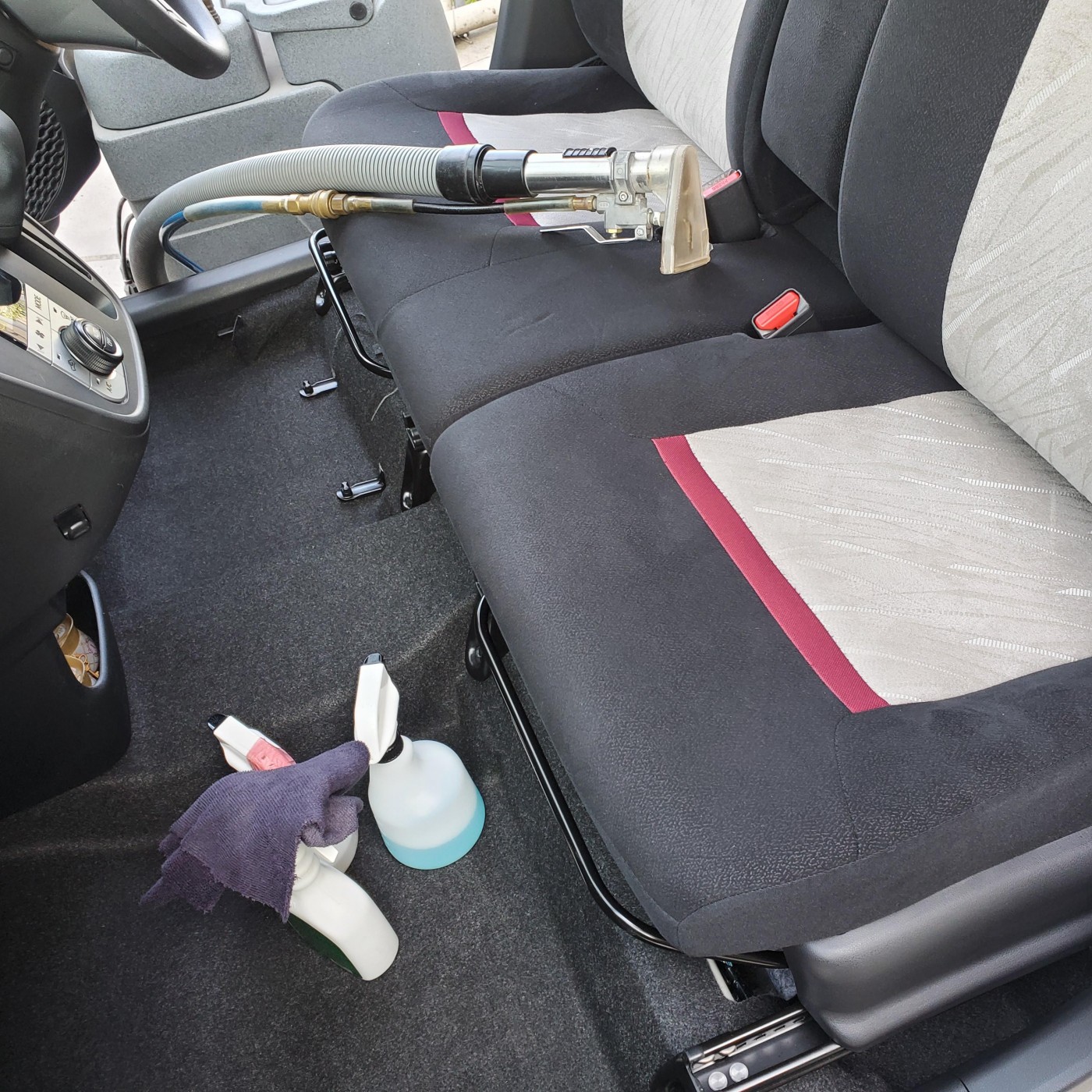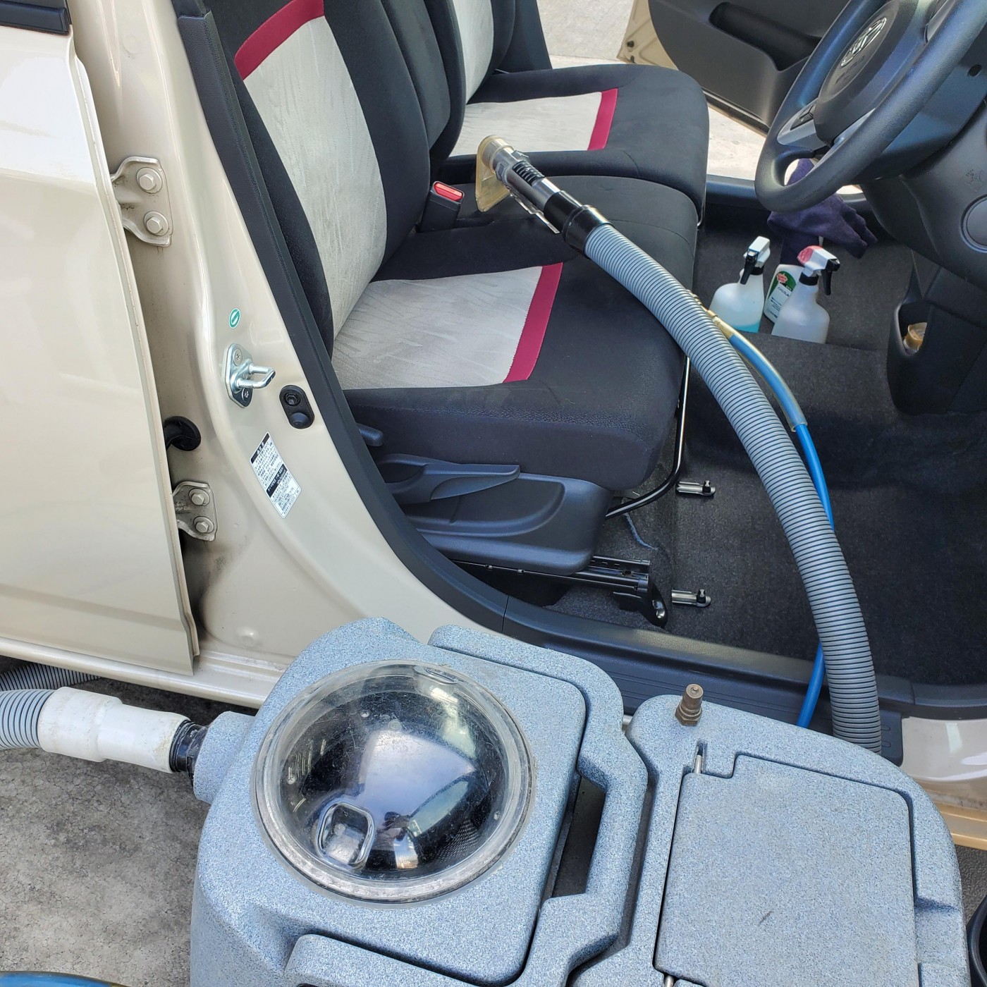 シートの下のフロアカーペットもスチーム洗浄しクリーンな状態に!