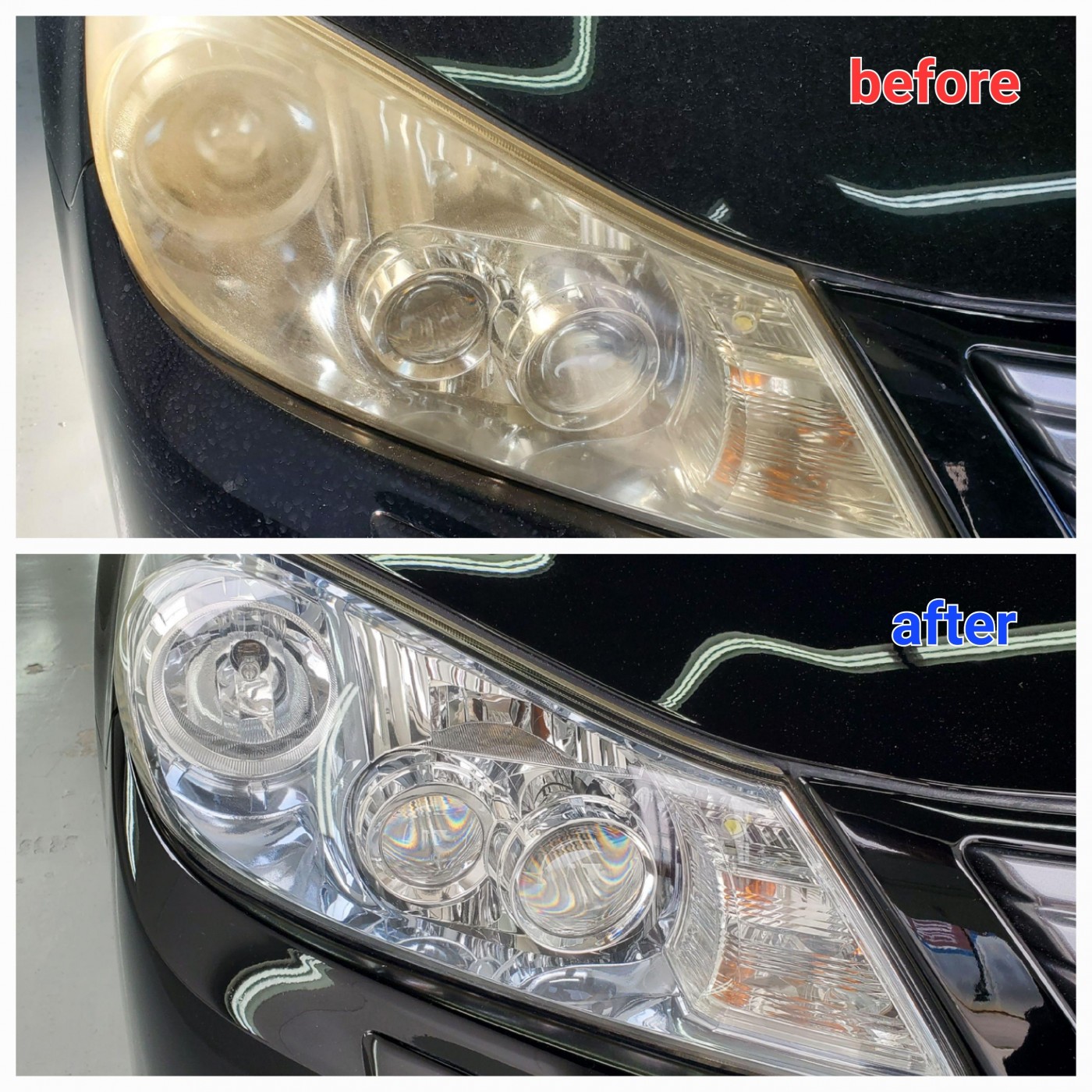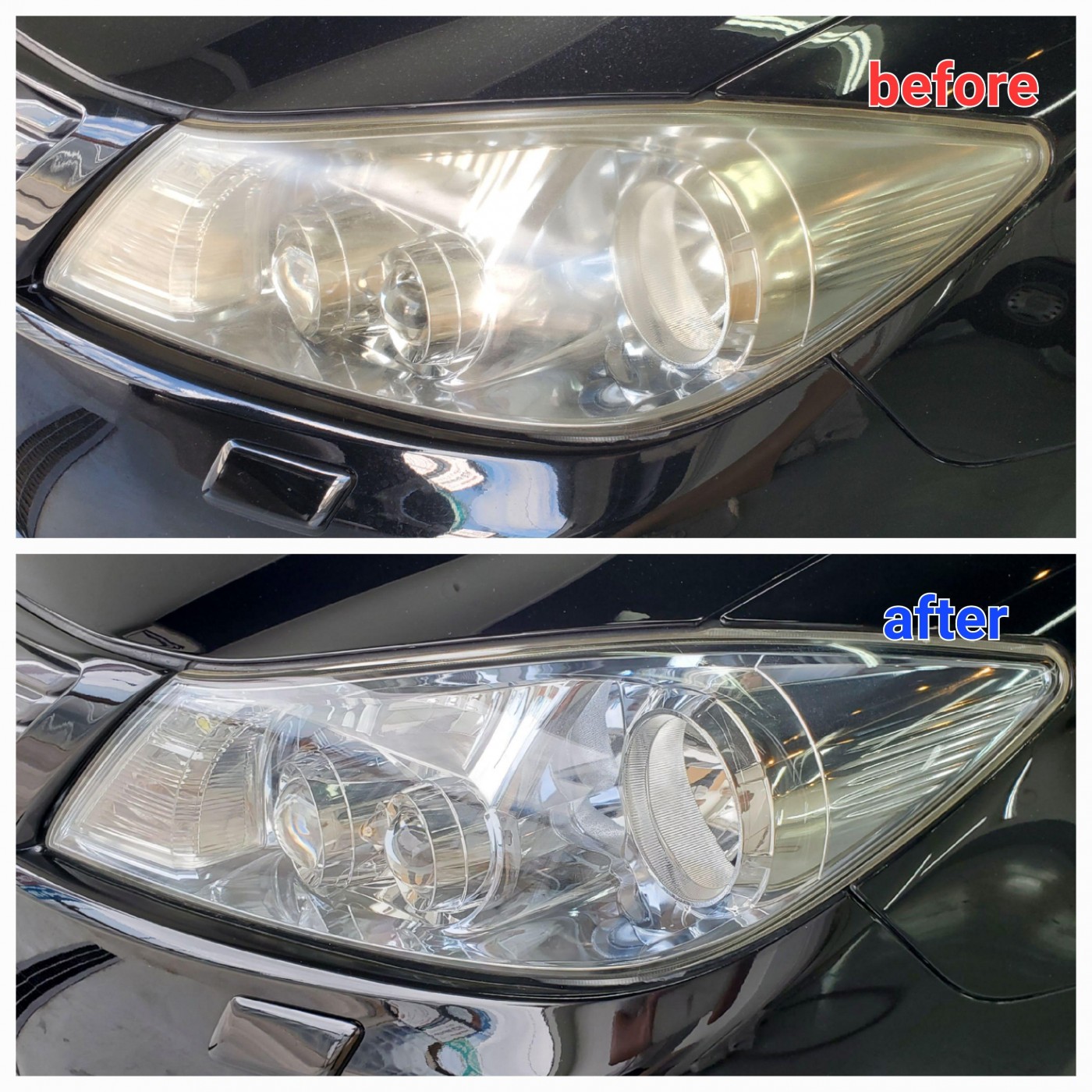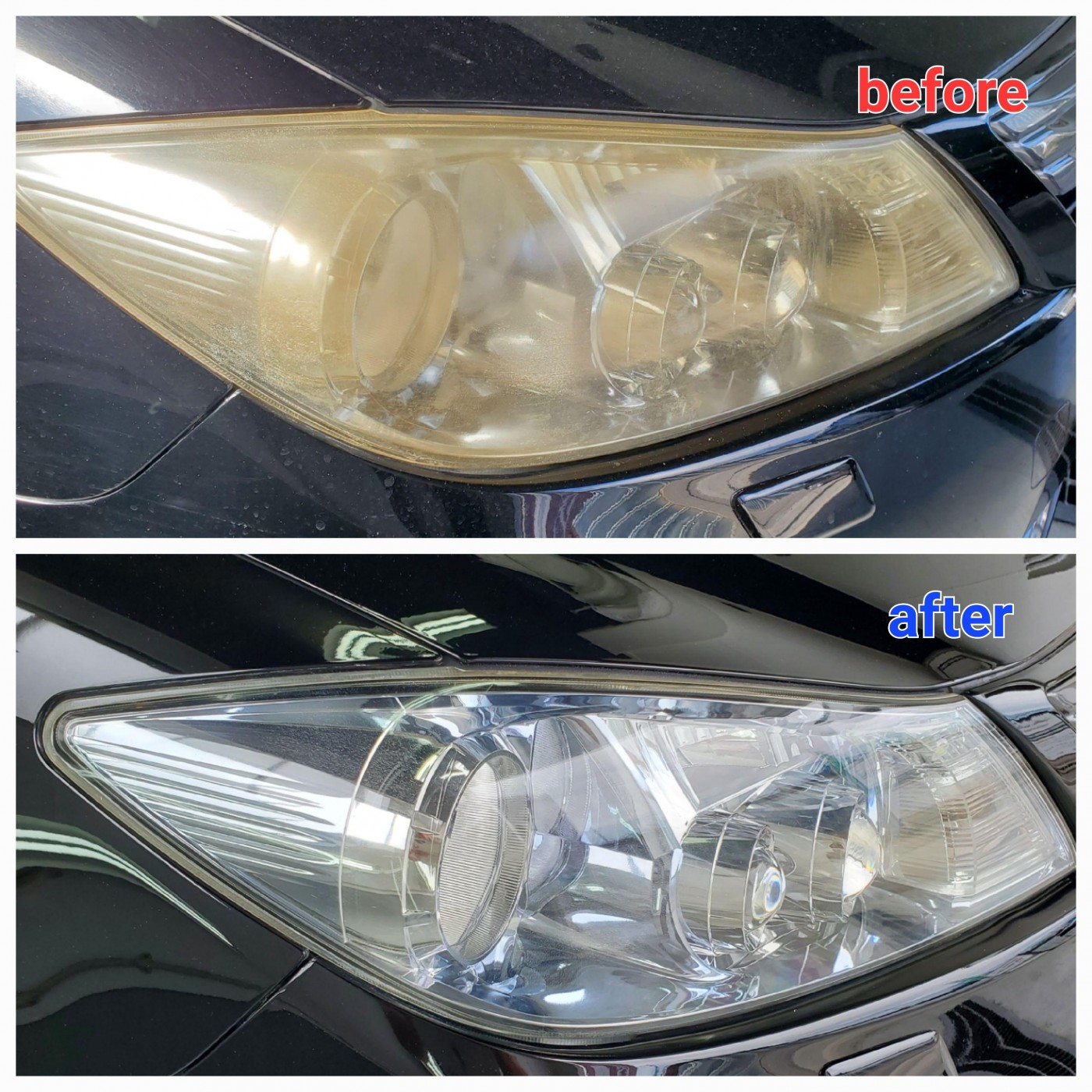 透明感が復活したヘッドライトを見たオーナー様より、仕上がりをとても喜んでいただきました。