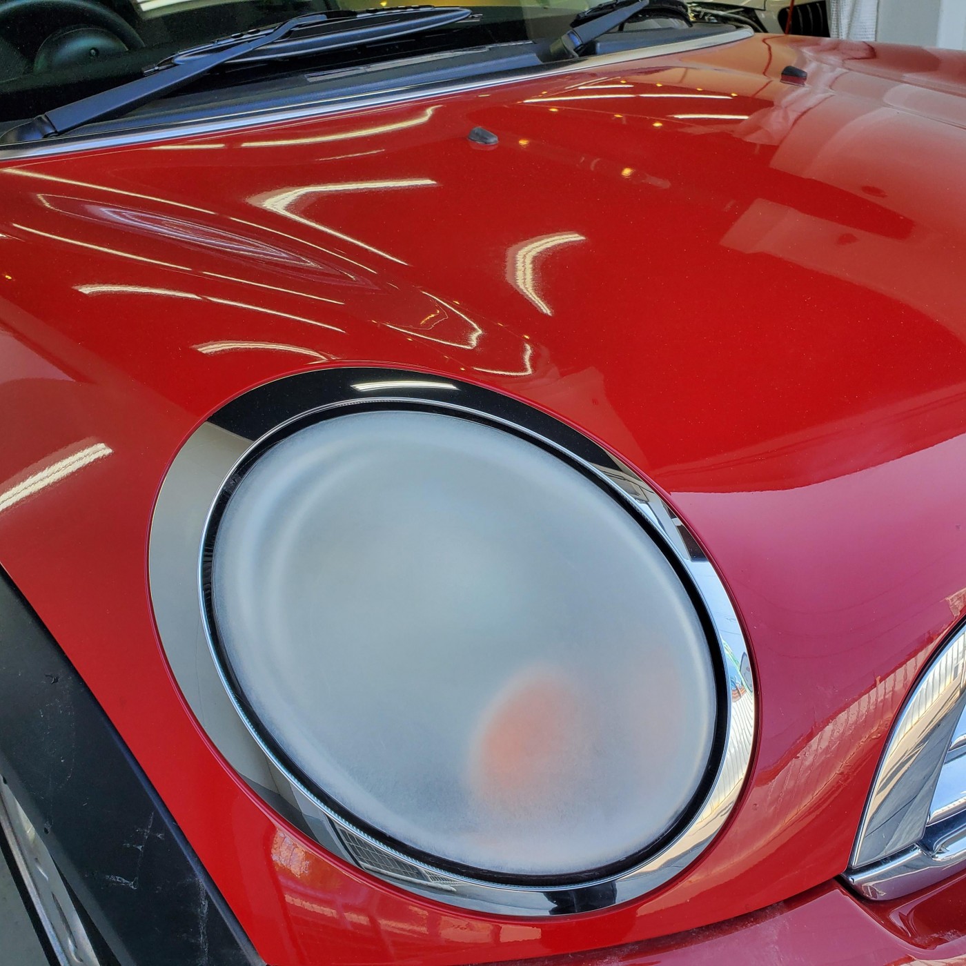 先ずは、表面のハードコートをサンディングして黄ばみ、くすみ、細かな擦り傷をしっかり取り除き、そこから磨き仕上げをして、最後に皮膜材を塗り込んで施工完了!