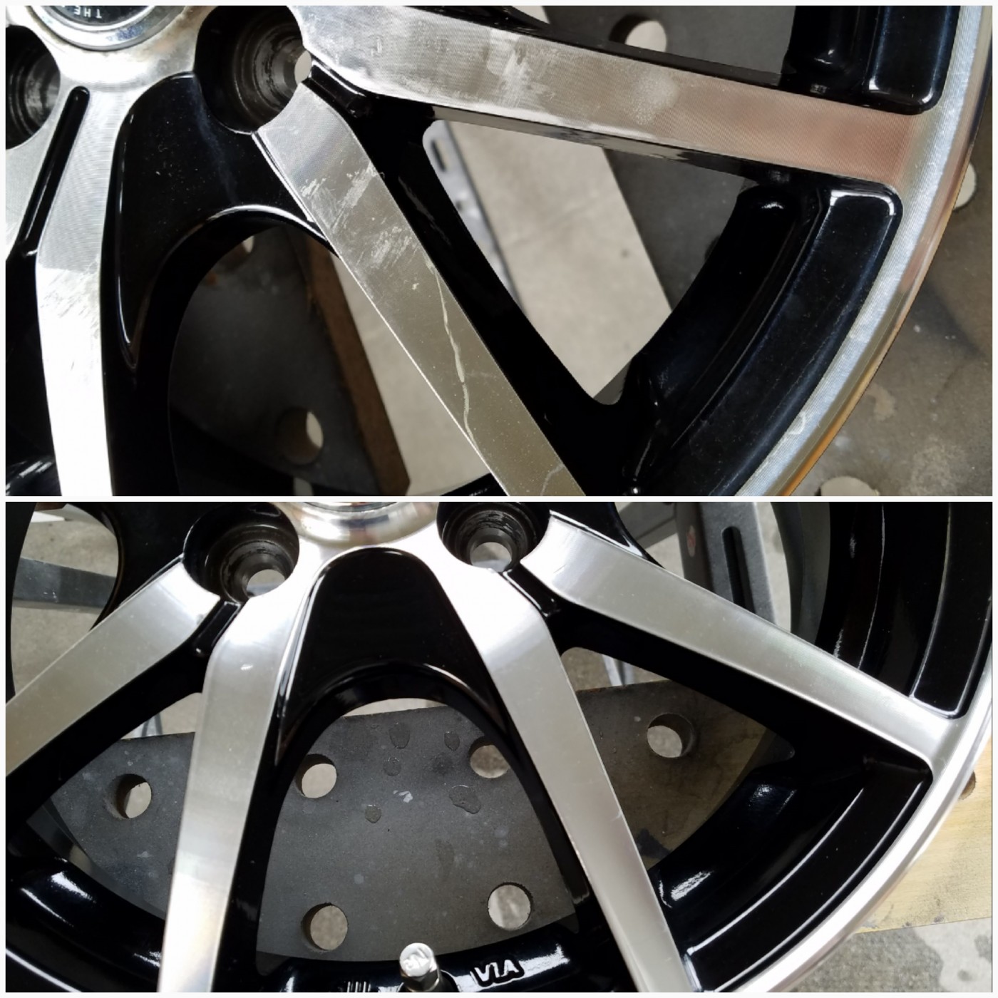 ブラックポリッシュホイールのスポークがり傷リペア