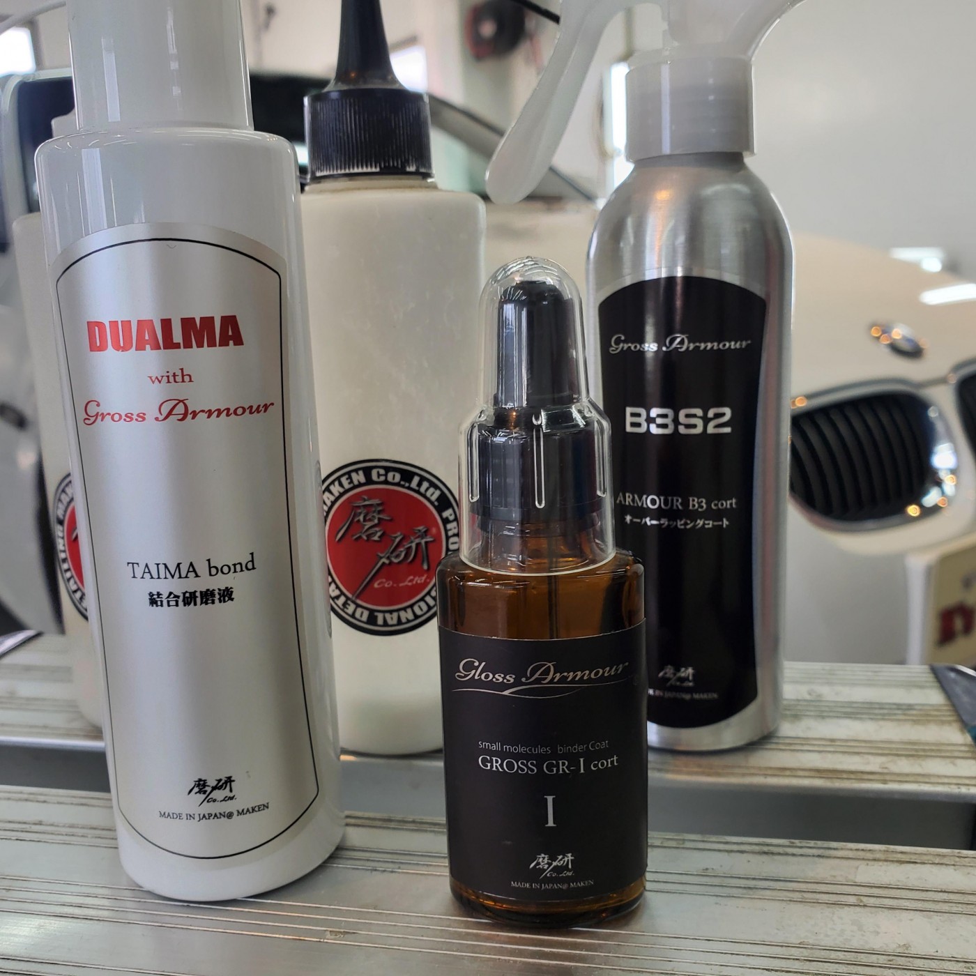 ボディーボディークレンジングからの磨き上げとTAIMA(コーティング結合研磨液)にて下地処理をしっかりとしてボディーについた傷や洗車傷などをリセットし、ガラスコーティングのグロスアーマーを塗り込みして施工完了!