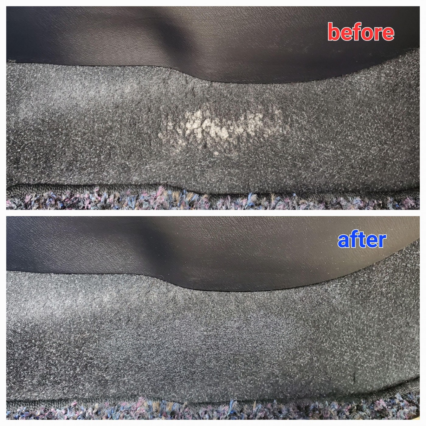 経年劣化によるステアリングの色あせ、ベタ付きとフロアカーペットの擦り切れ等でお困りのカーディーラー様よりリペアのご依頼をいただきました。