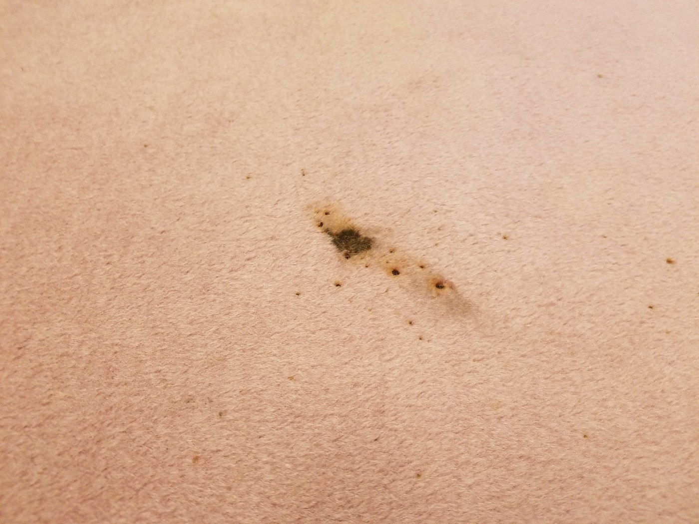綺麗な桜色のカーペットに焦げ穴が。。。