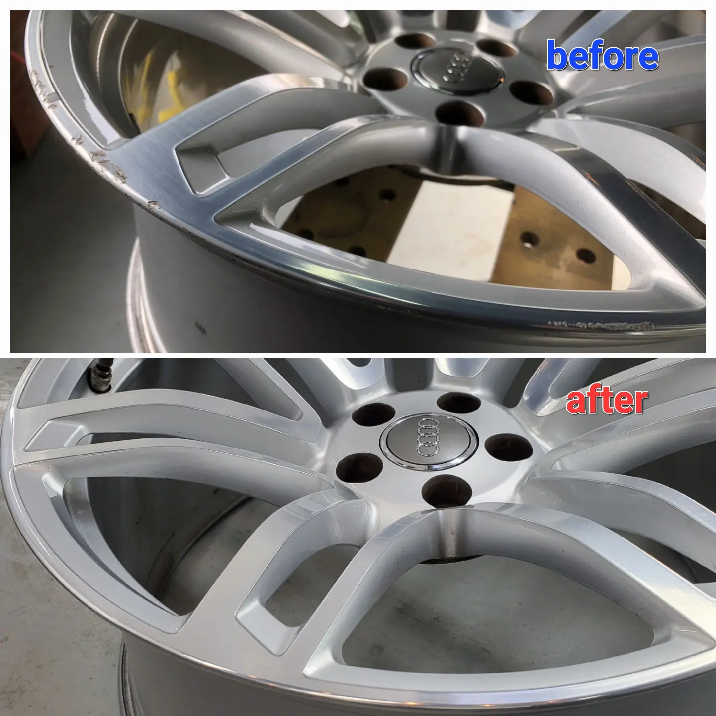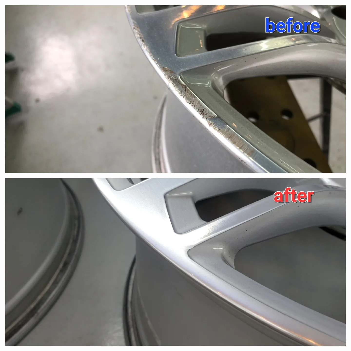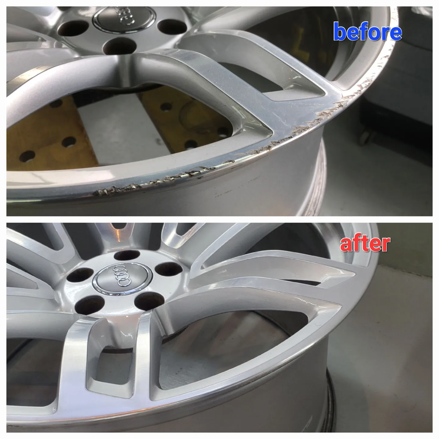 縁石に寄せすぎてガリ傷を付けてしまったお客様からのご依頼で、ダイヤカット仕上げ部分のがり傷のリペアをご依頼いただきました。