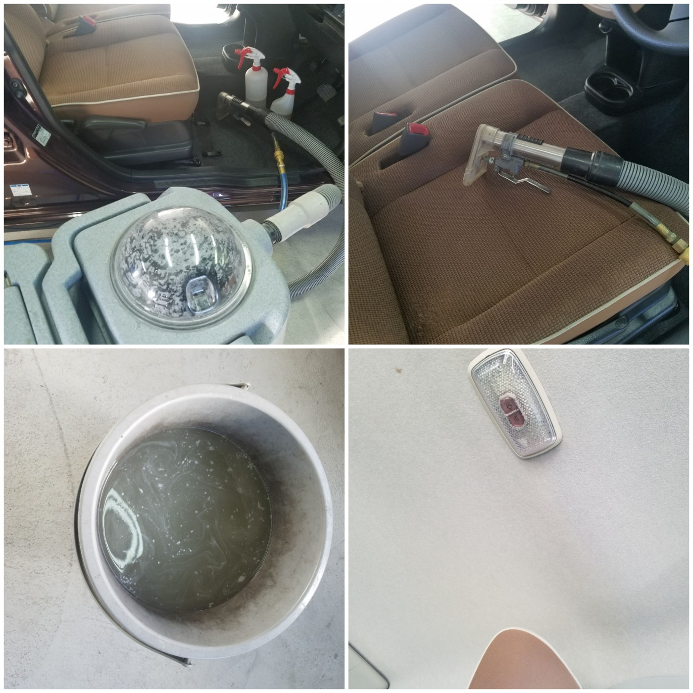 スチームリンサーにて全席シート洗浄からのルーフライニング(天井)の洗浄で
