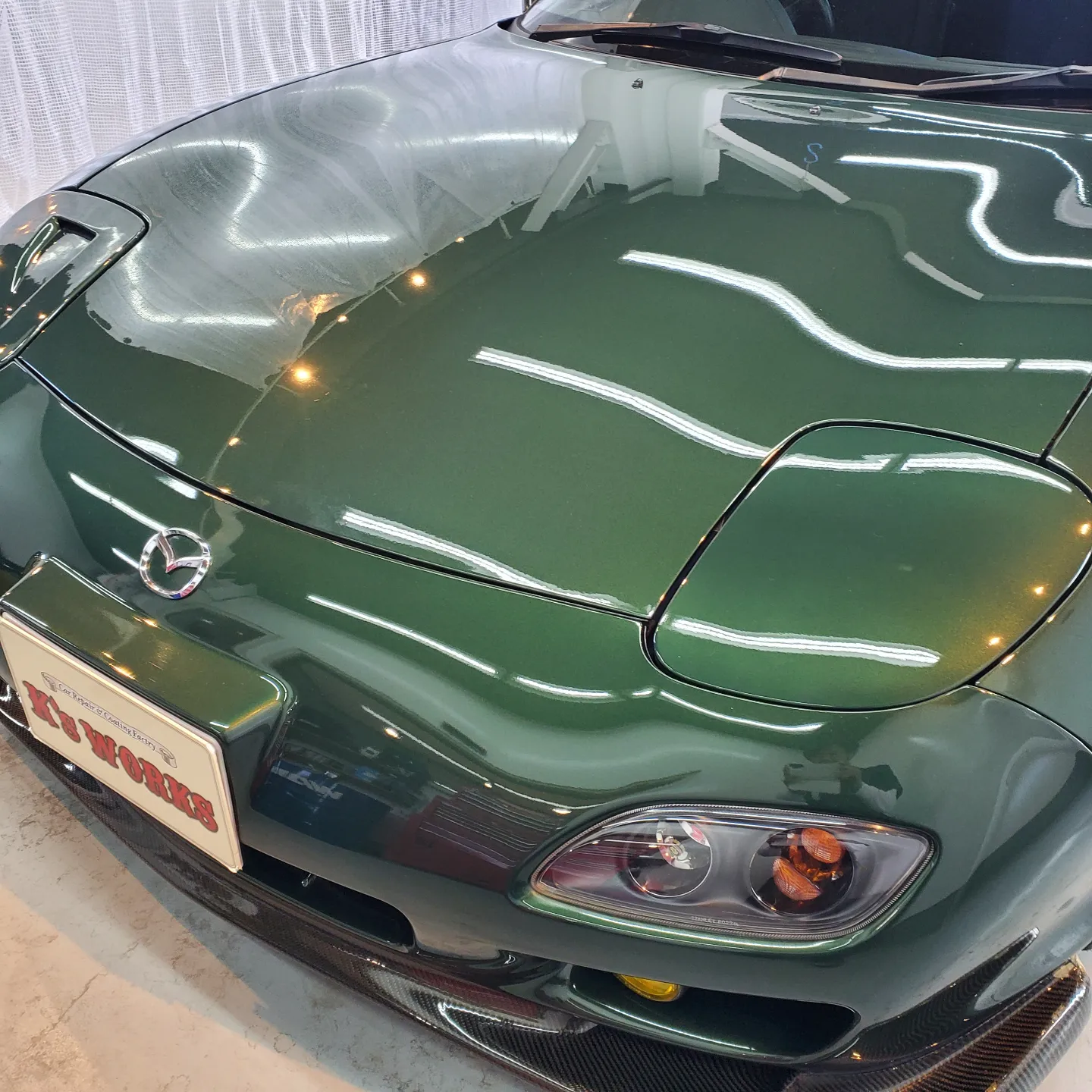 ボディークレンジングからの磨き上げとTAIMA(コーティング結合研磨液)にて下地処理を‎‎しっかりとしてボディーについた傷や洗車傷などをリセットし、ガラスコーティングのグロスアーマーを塗り込みして施工完了! ‎