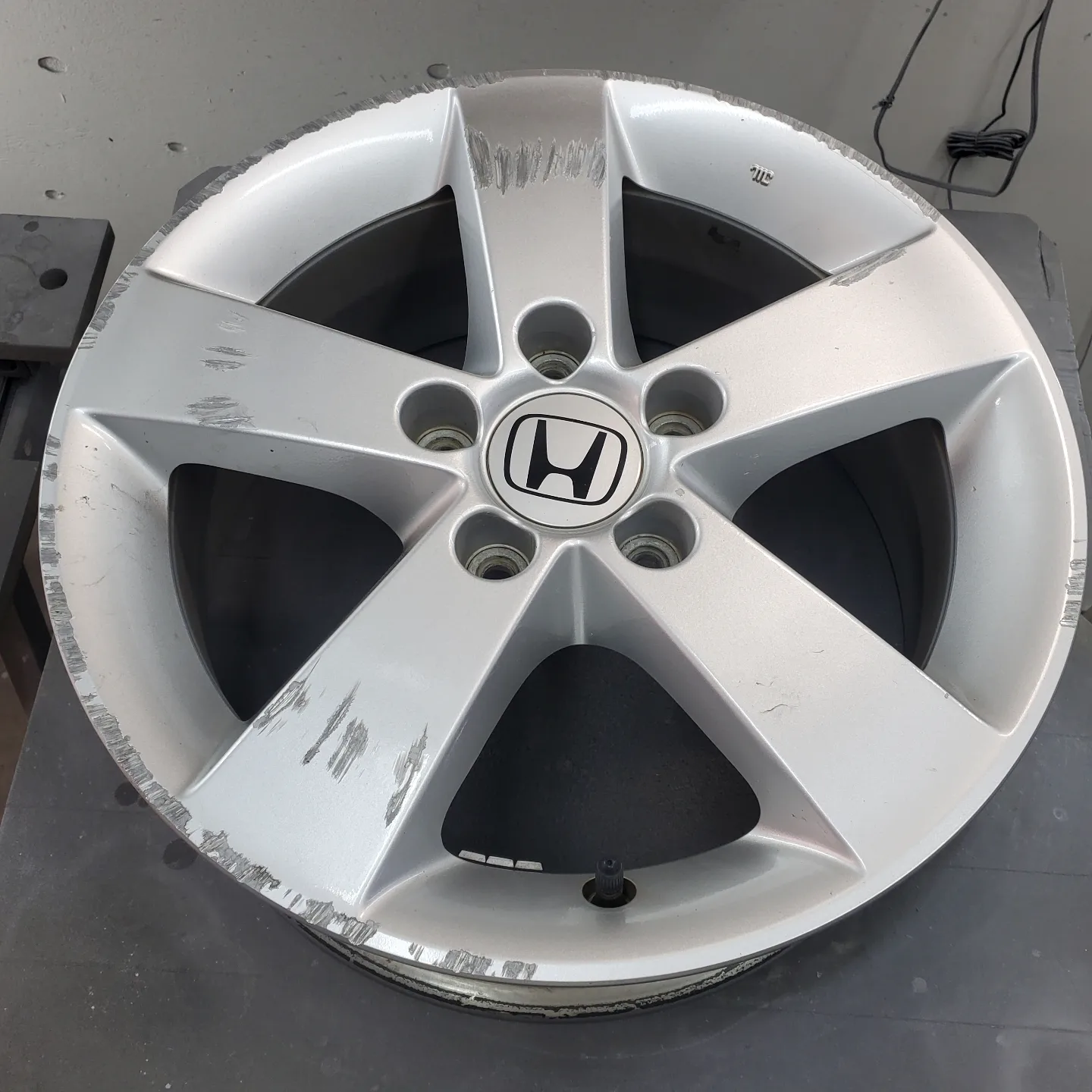 車を寄せすぎてホイールに傷を付けてしまったお客様からがり傷リペアのご依頼をいただきました。