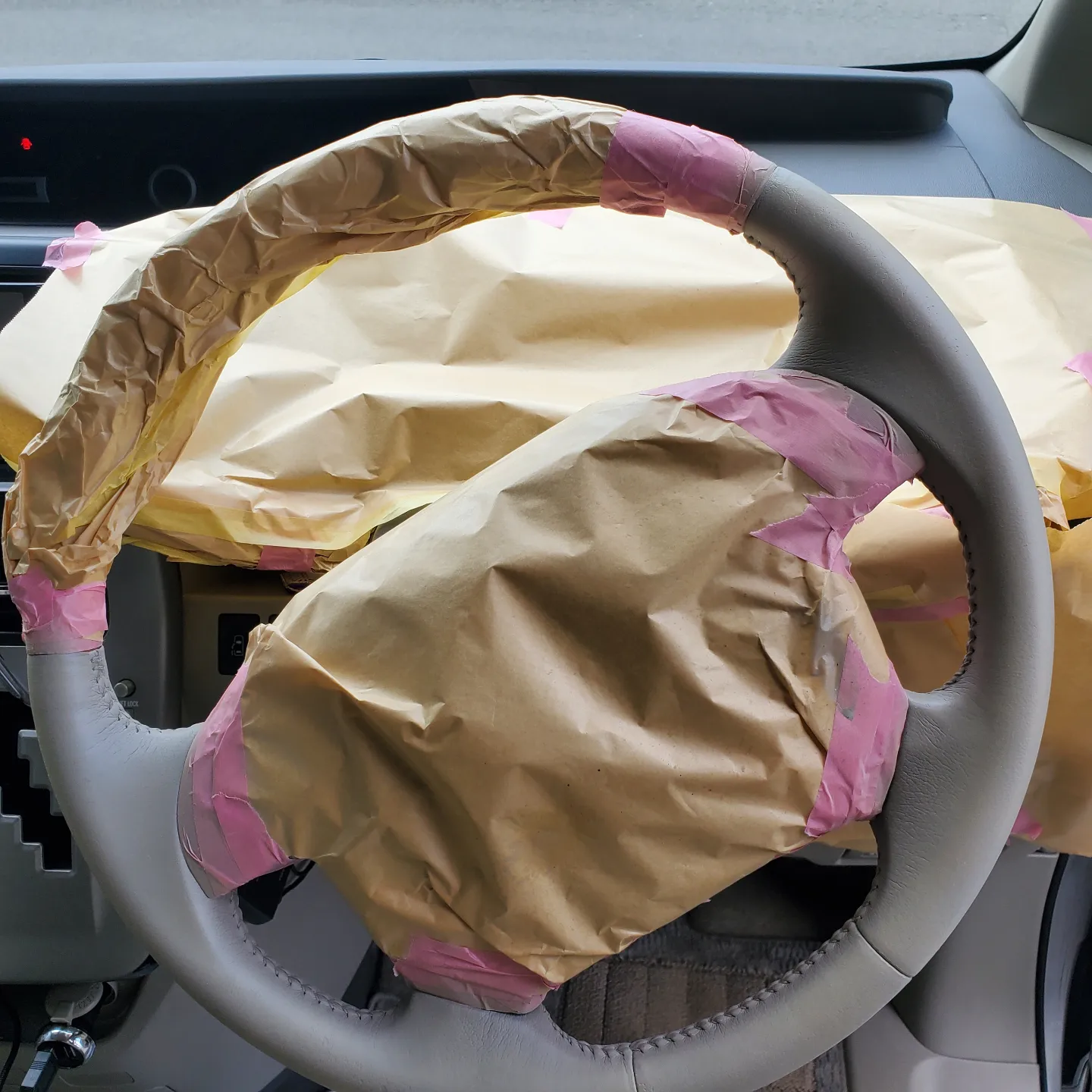 経年劣化によるステアリングの剥がれ、色落ち、擦り切れ等でお困りのお客様より修復のご依頼をいただきました。