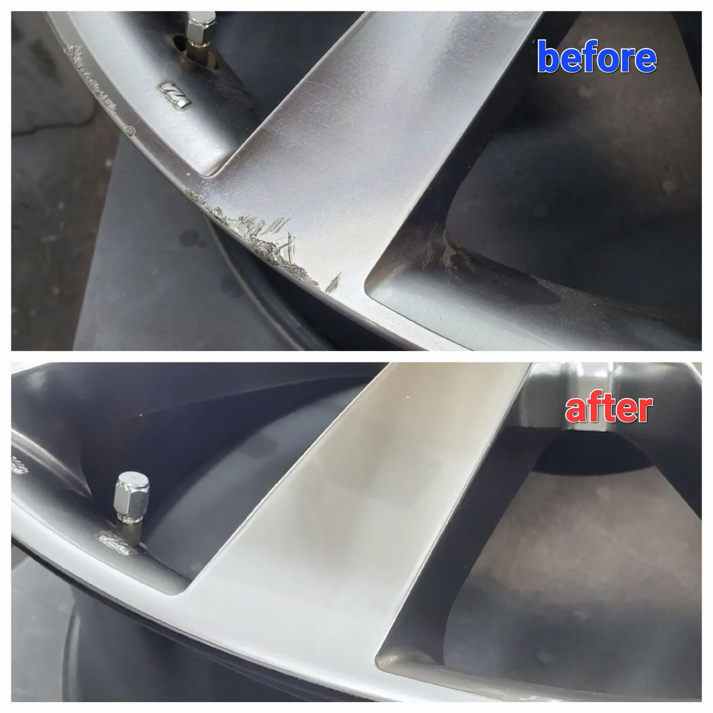 縁石に寄せすぎてガリ傷を付けてしまったお客様からのご依頼で、ダイヤカット仕上げ部分のがり傷のリペアをご依頼いただきました。