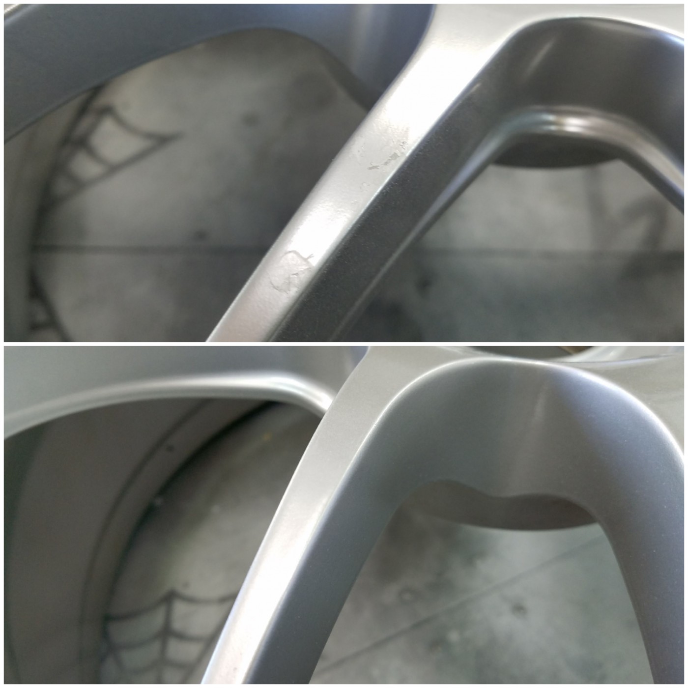 リム部、スポーク部の擦り傷を綺麗に補修し