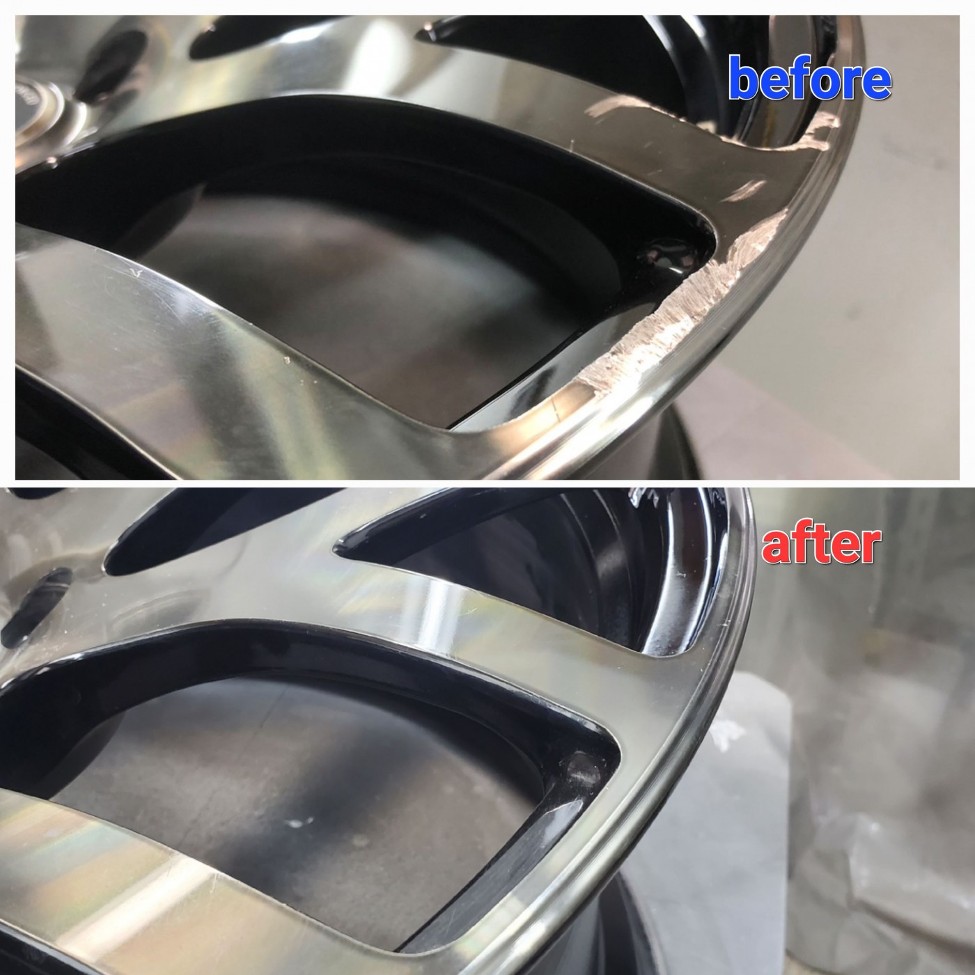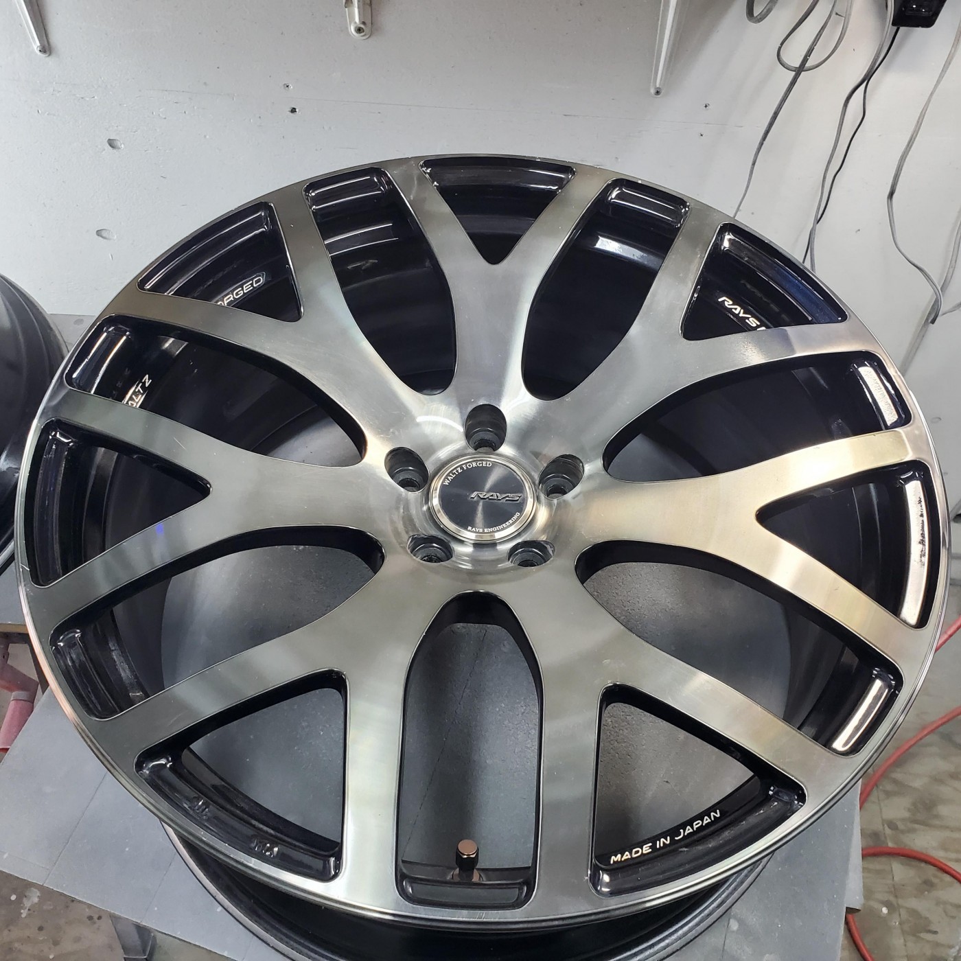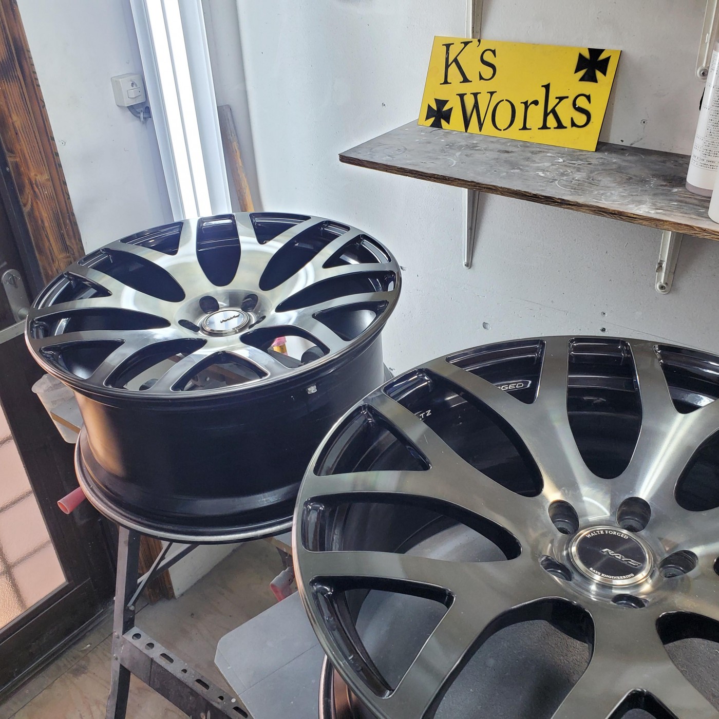 当社では、ダイヤカットホイールの再加工も可能ですが、今回はリーズナブルなポリッシュ風の塗料とスモーククリアーでの塗装で仕上げました。