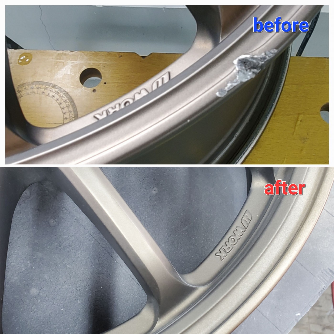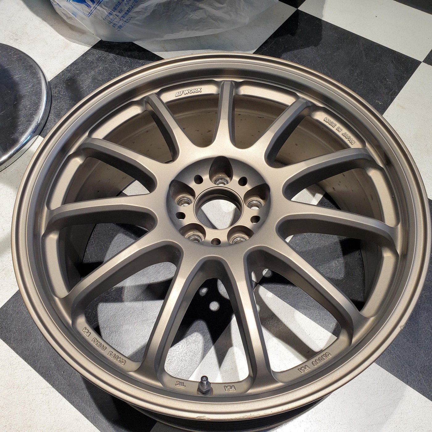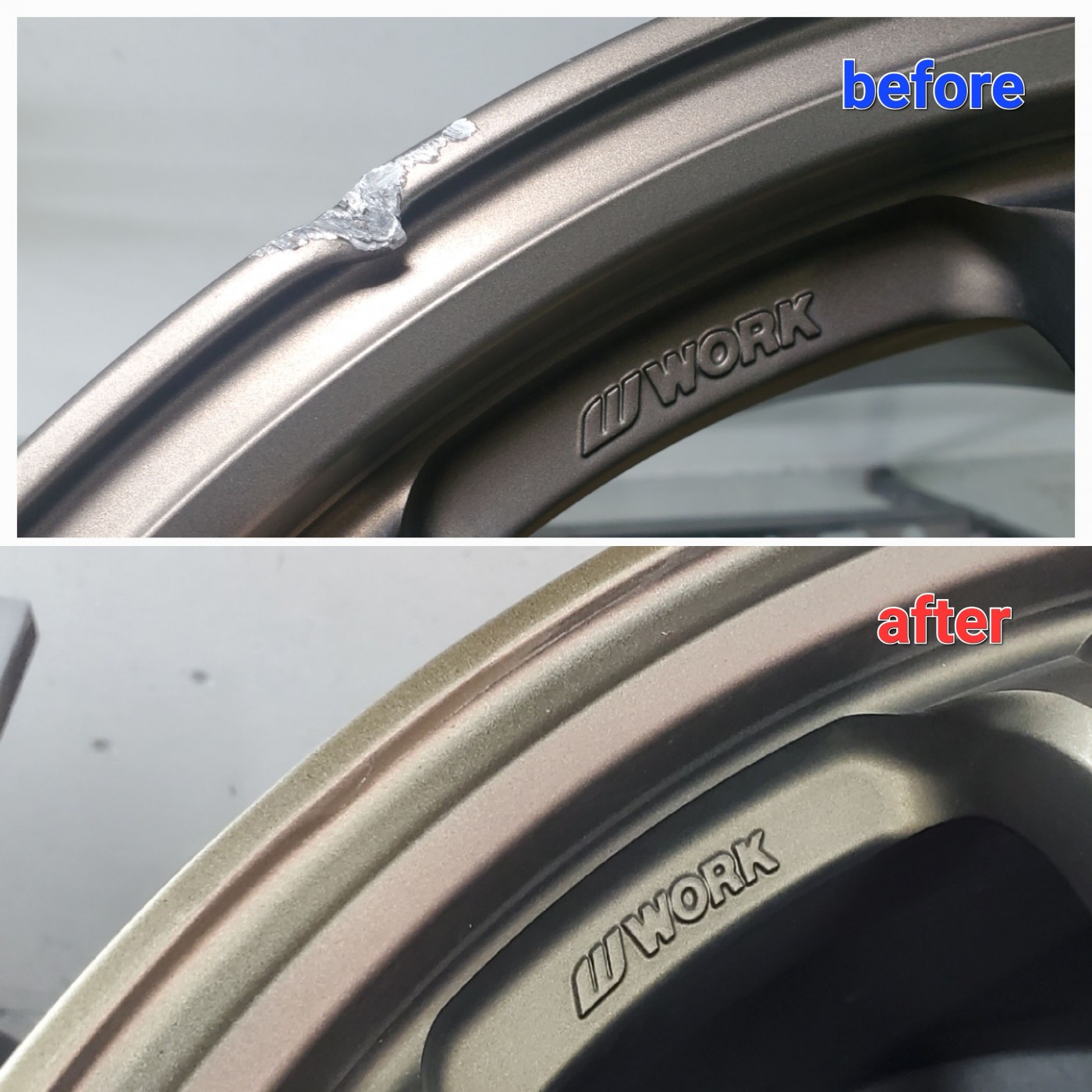 WORKのブロンズボールド色のホイールリムのがり傷でお困りのお客様よりリペアのご依頼をご依頼をいただきました。 色差もなく綺麗な仕上がりにとてもご満足いただきました。
