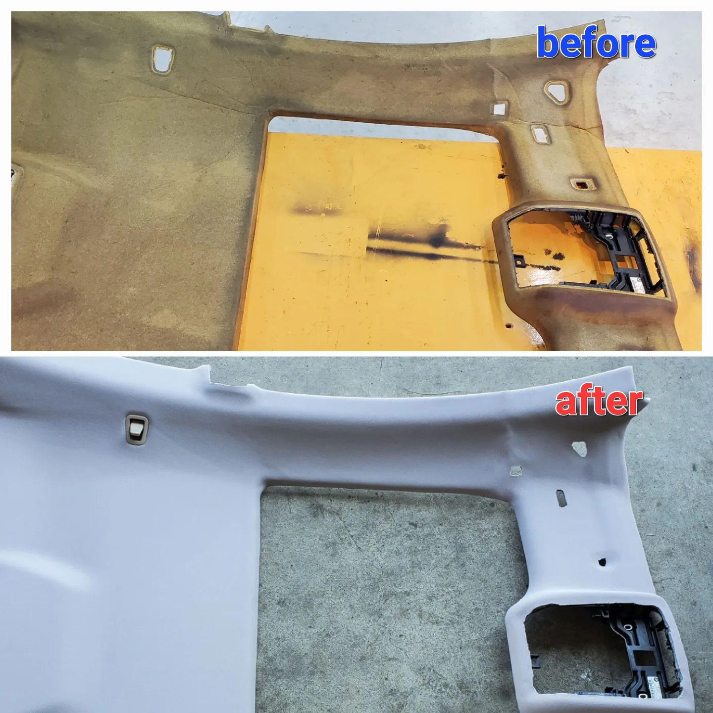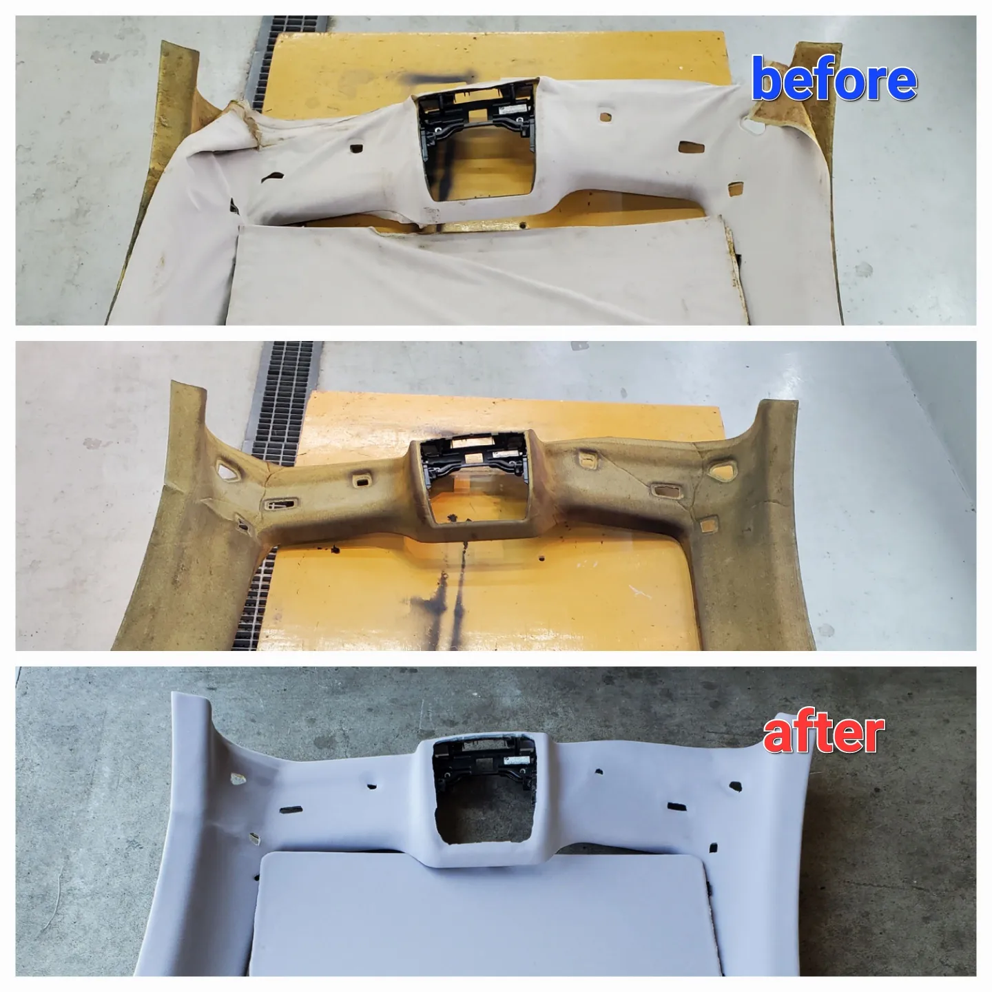 輸入車に多いルーフライニング剥がれでお困りの中古車販売店様より、生地の張替えのご依頼を頂きました。
