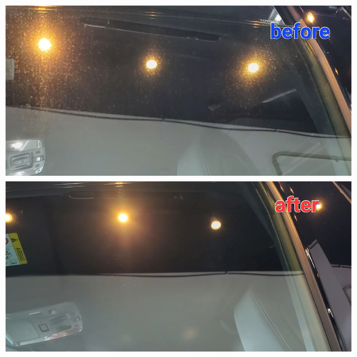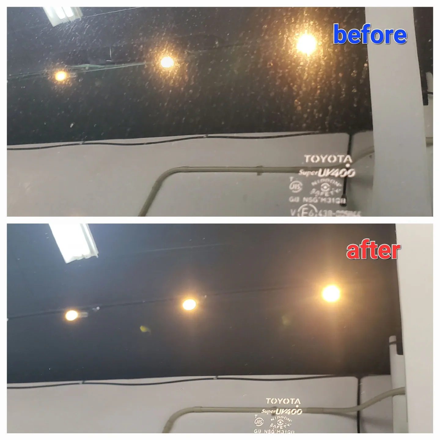 最後にガラス全面のウロコを専用のコンパウンドと溶剤で綺麗にクリーニングしてすべての施工完了!!