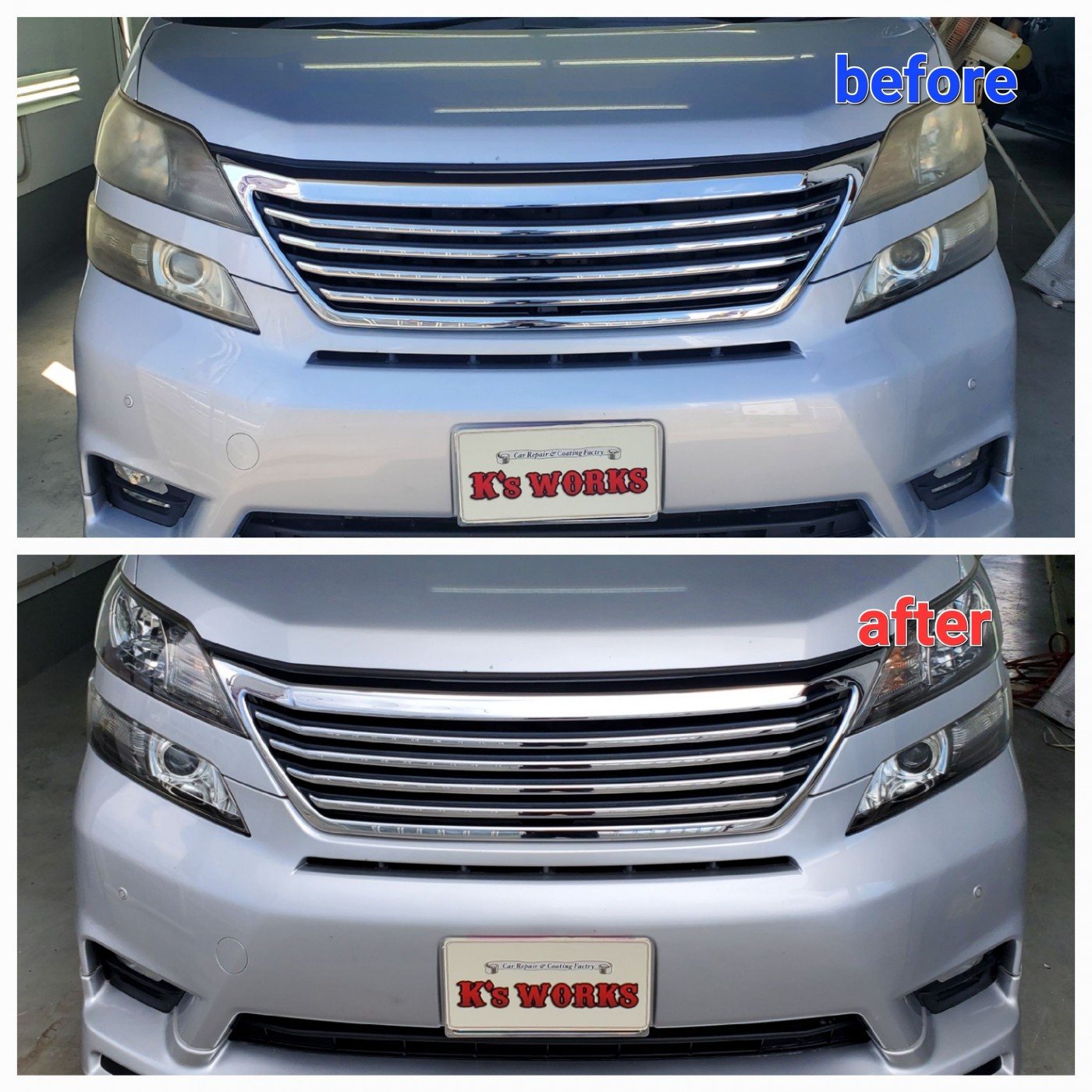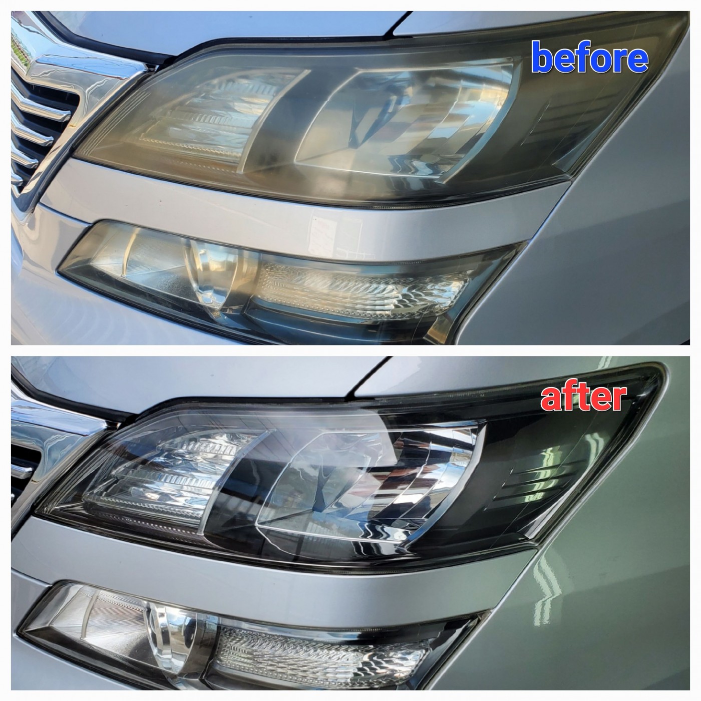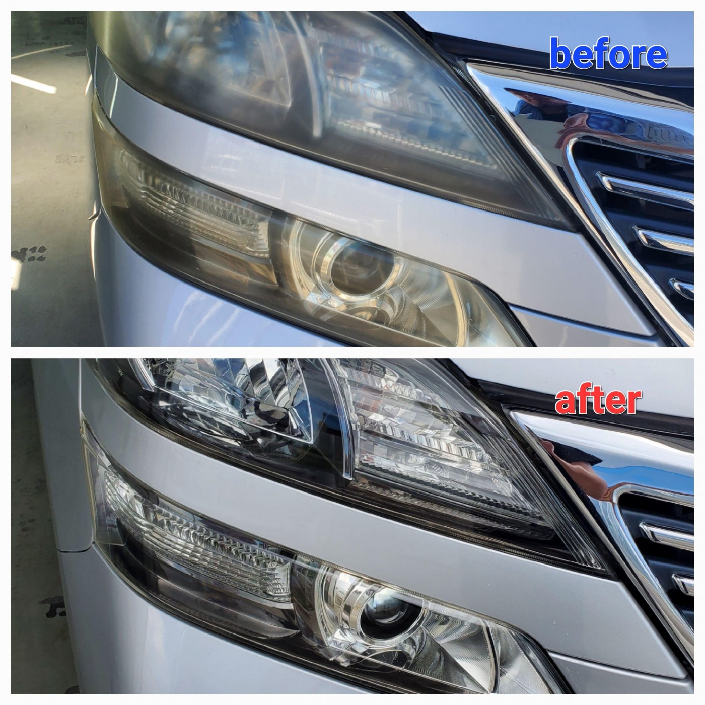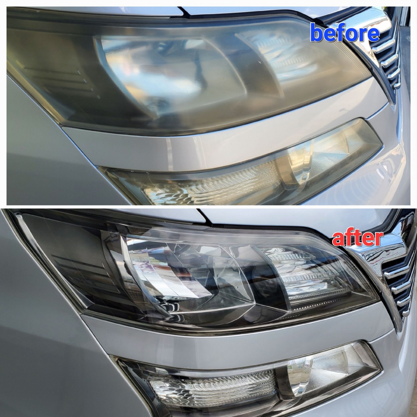 透明感が復活したヘッドライトを見たオーナー様から、仕上がりをとても喜んでいただきました。