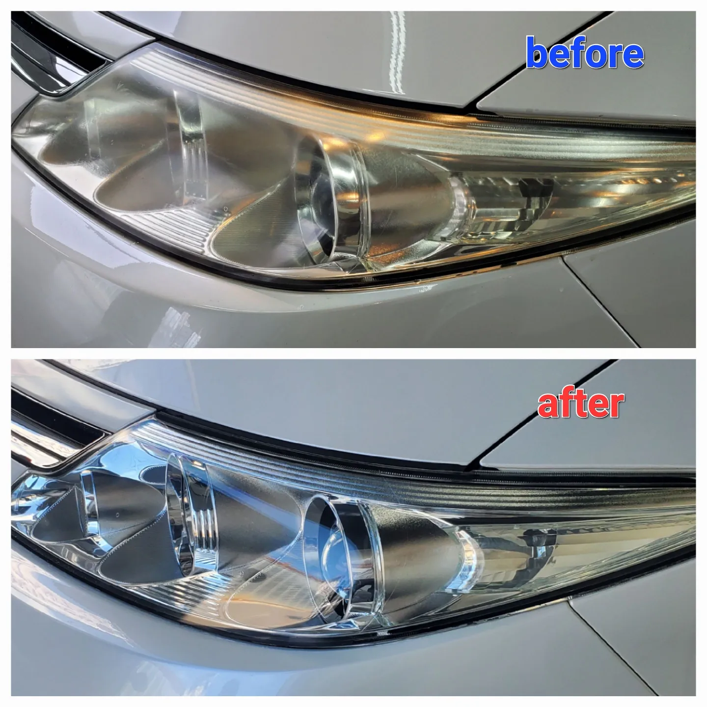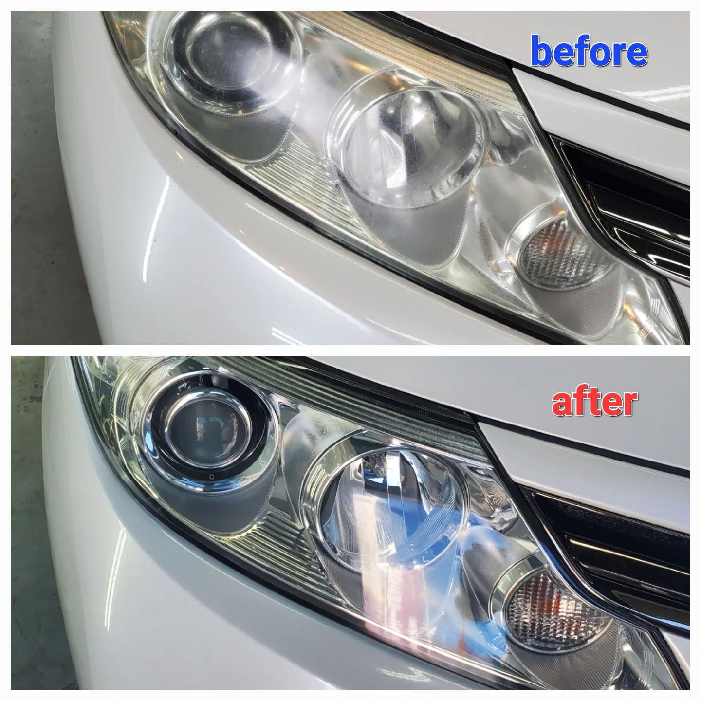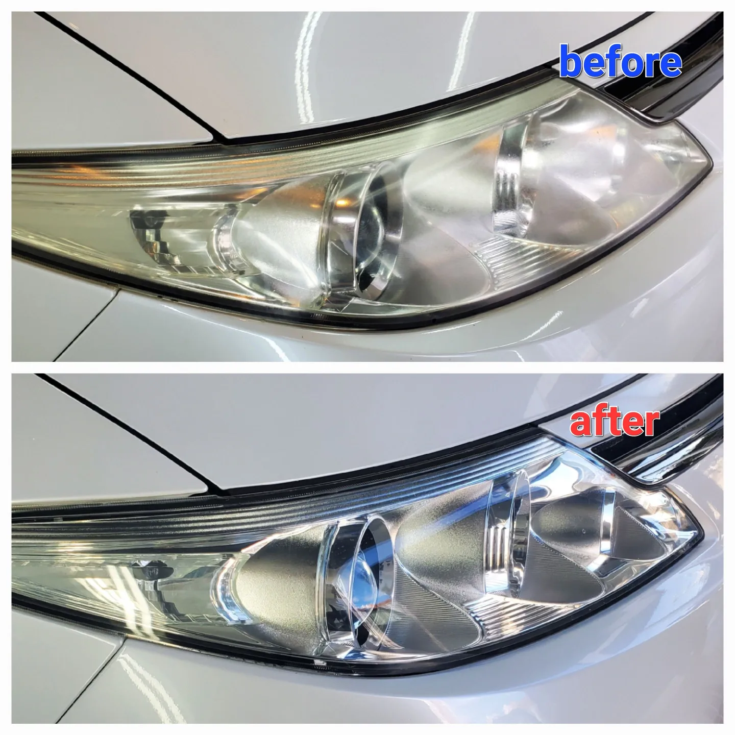 透明感が復活したヘッドライトを見たオーナー様から、仕上がりをとても喜んでいただきました。
