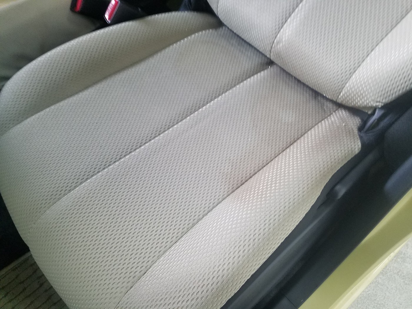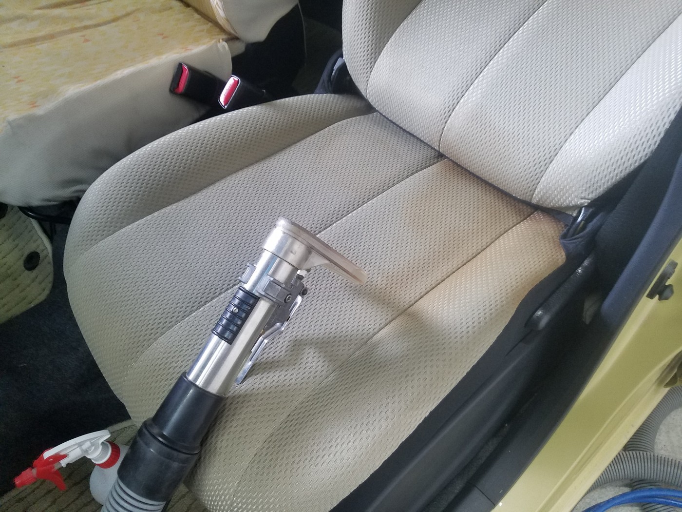 シートの食べこぼし、飲みこぼしによる汚れシミもスチームリンサーで綺麗に洗浄クリーニング!