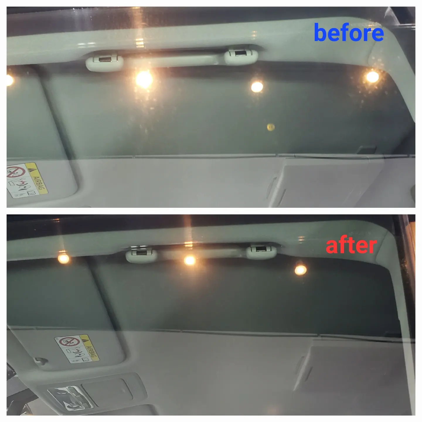 最後に車内を隅々クリーニングとガラスのウロコを綺麗に除去して施工完了。