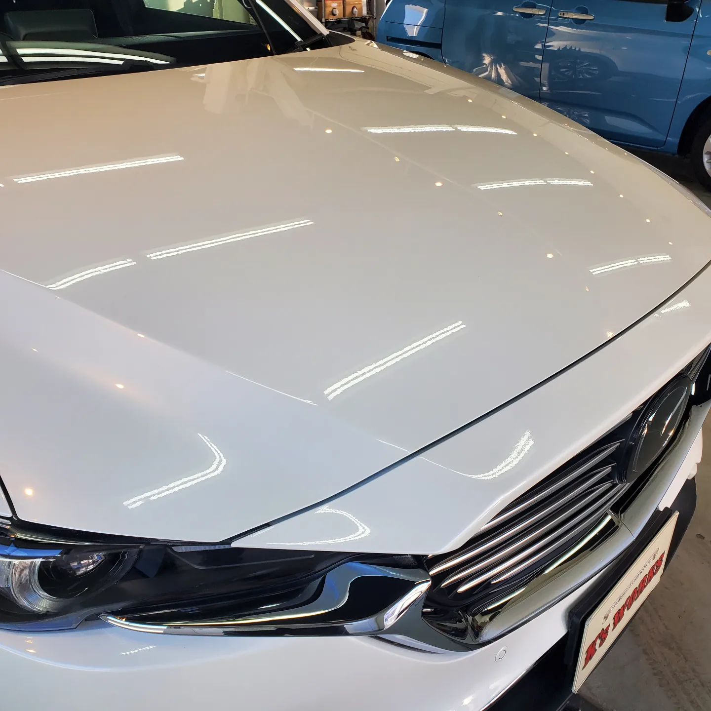 ボディークレンジングからの磨き上げとTAIMA(コーティング結合研磨液)にて下地処理を‎‎しっかりとしてボディーについた傷や洗車傷などをリセットし、ガラスコーティングのグロスアーマーを塗り込みして施工完了! ‎