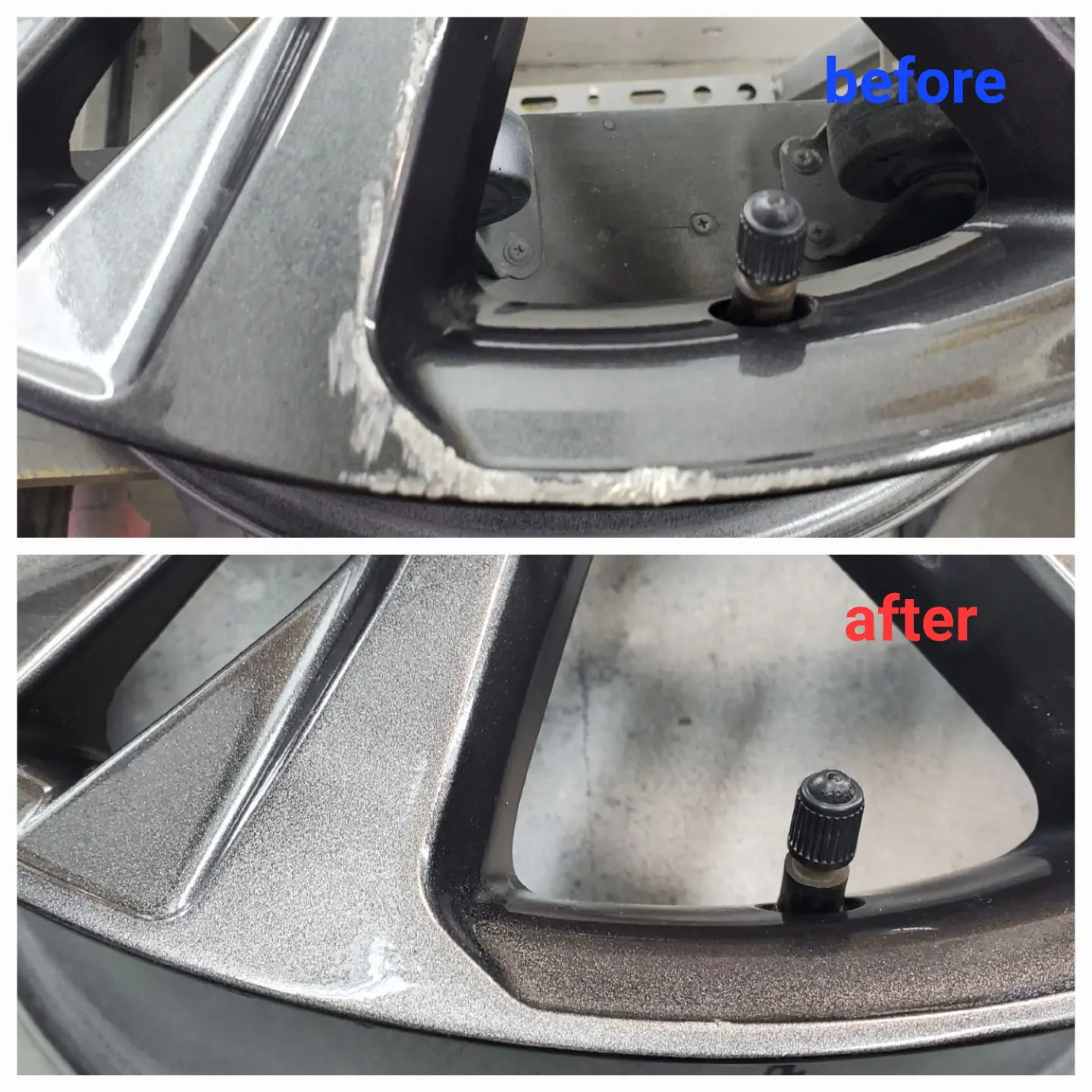 車を寄せすぎてホイールに傷を付けてしまったお客様からがり傷リペアのご依頼をいただきました。
