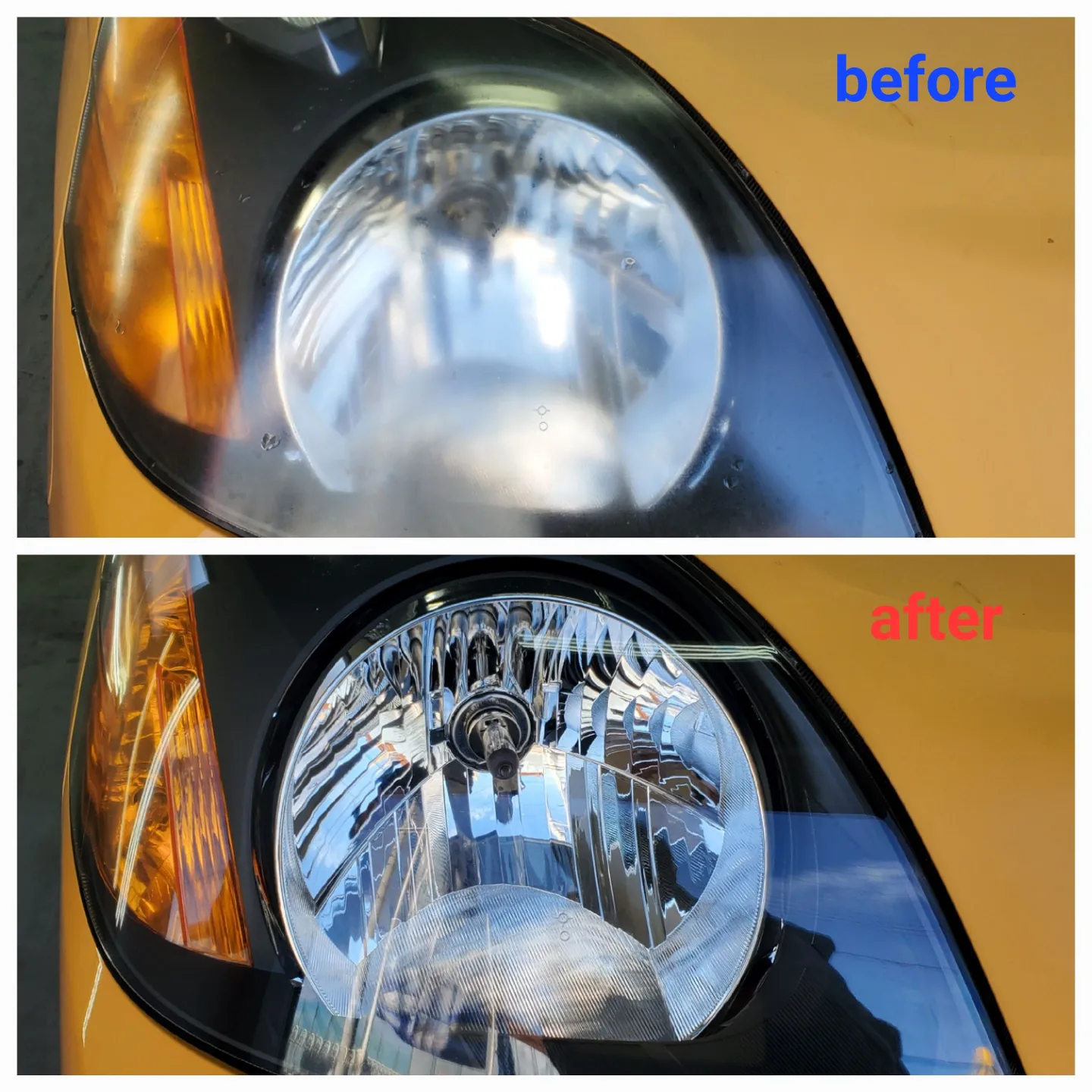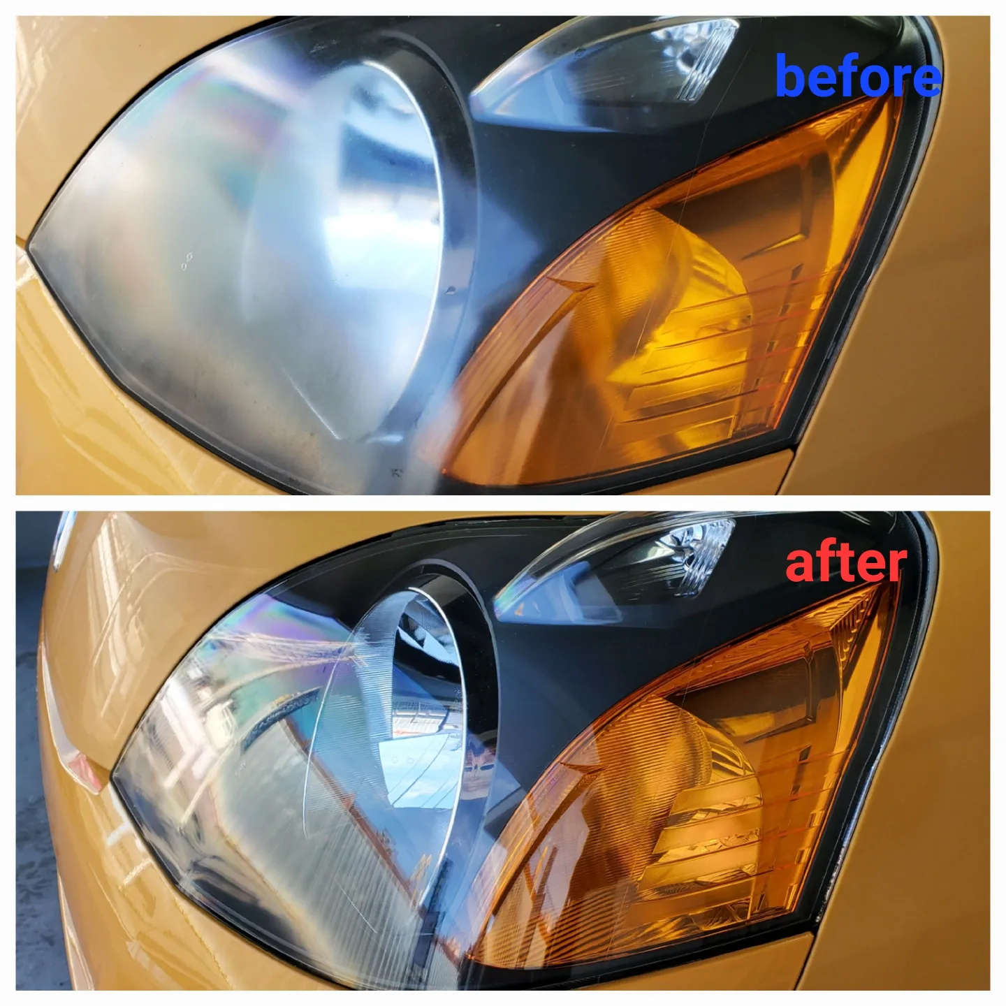 先ずは、表面のハードコートをサンディングして黄ばみ、くすみ、細かな擦り傷をしっかり取り除き、そこから磨き仕上げをして最後に皮膜材を塗り込んで施工完了!