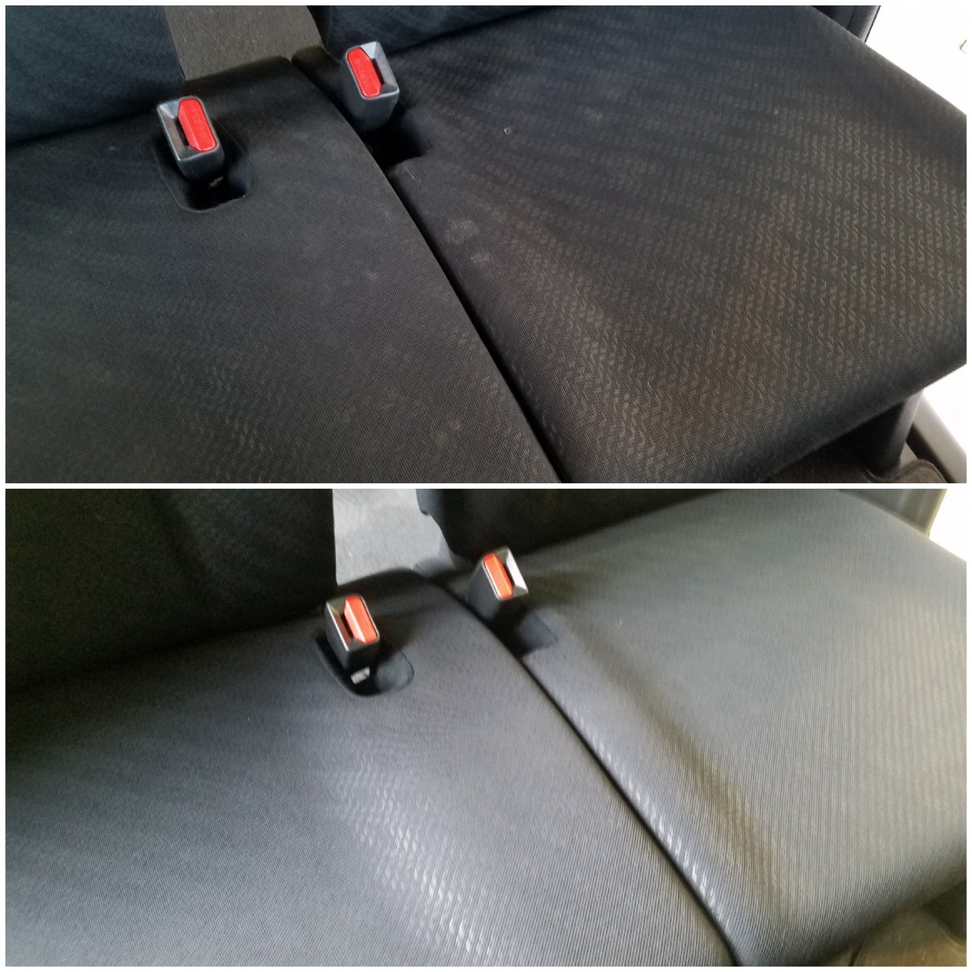 シートの食べこぼし、飲みこぼしによる汚れシミもスチームリンサーで綺麗に洗浄クリーニング!