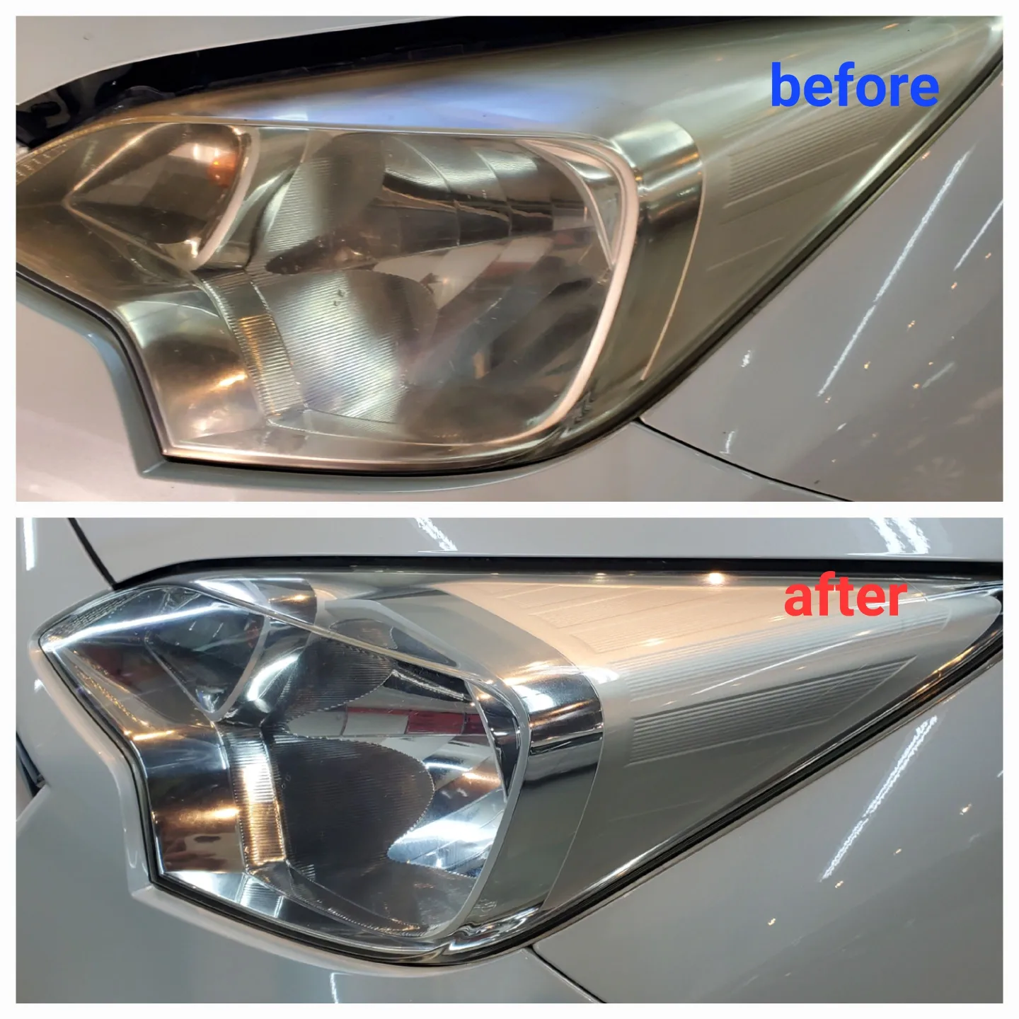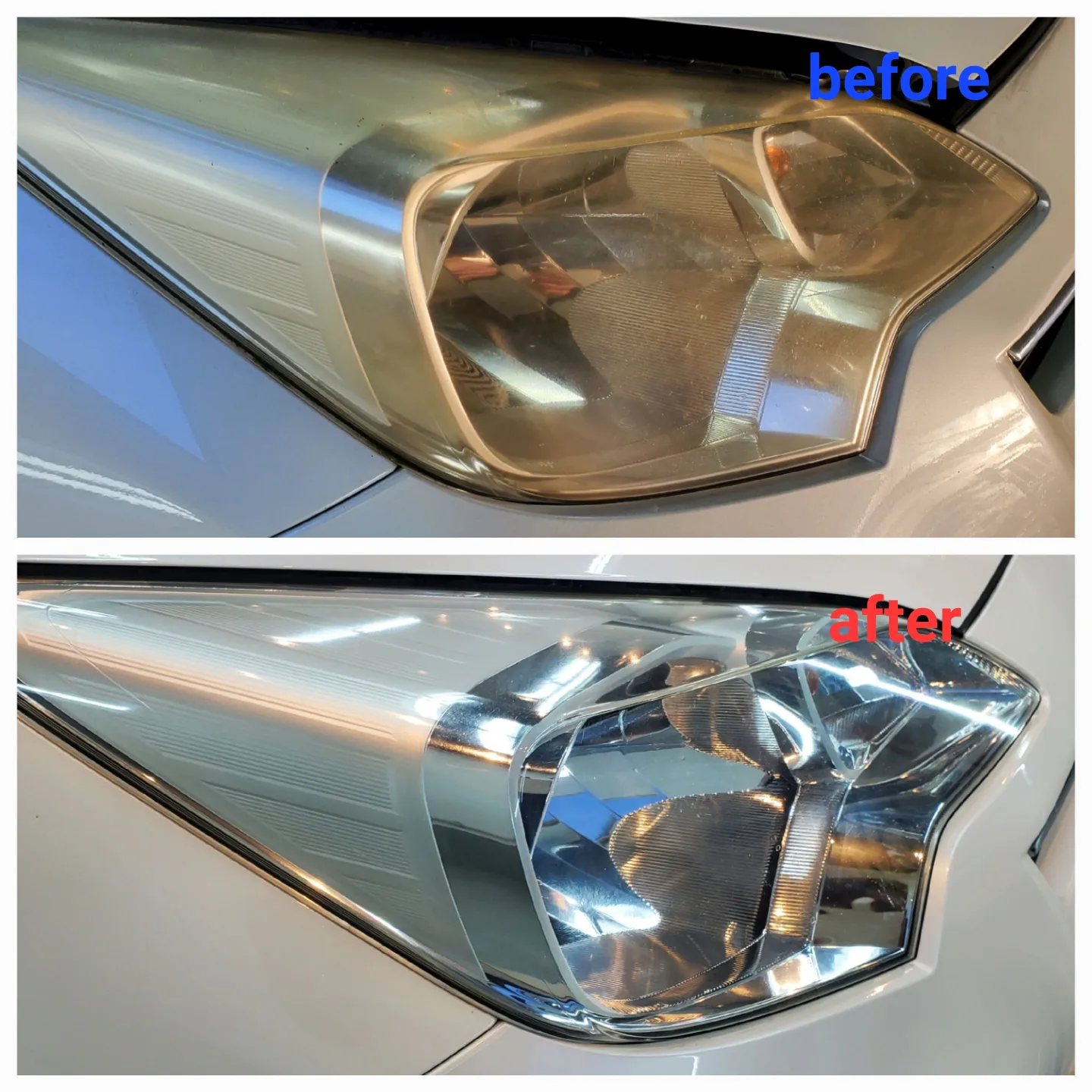 透明感が復活したヘッドライトを見たオーナー様から、仕上がりをとても喜んでいただきました。