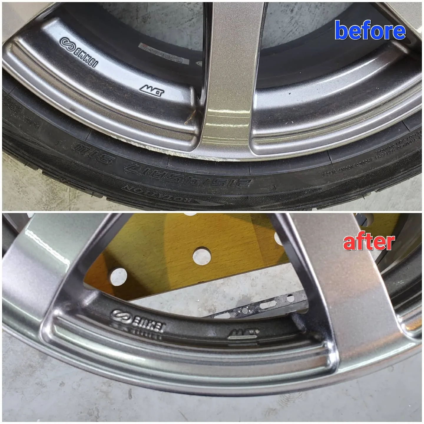 ENKEIのガンメタ色のホイールでリム部のがり傷でお困りのお客様よりリペアのご依頼をご依頼をいただきました。