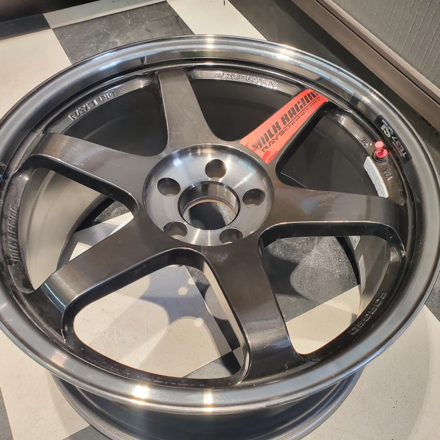 VOLK RACINGのスモーククリアー色のホイールでリム部のがり傷でお困りのお客様よりリペアのご依頼をご依頼をいただきました。