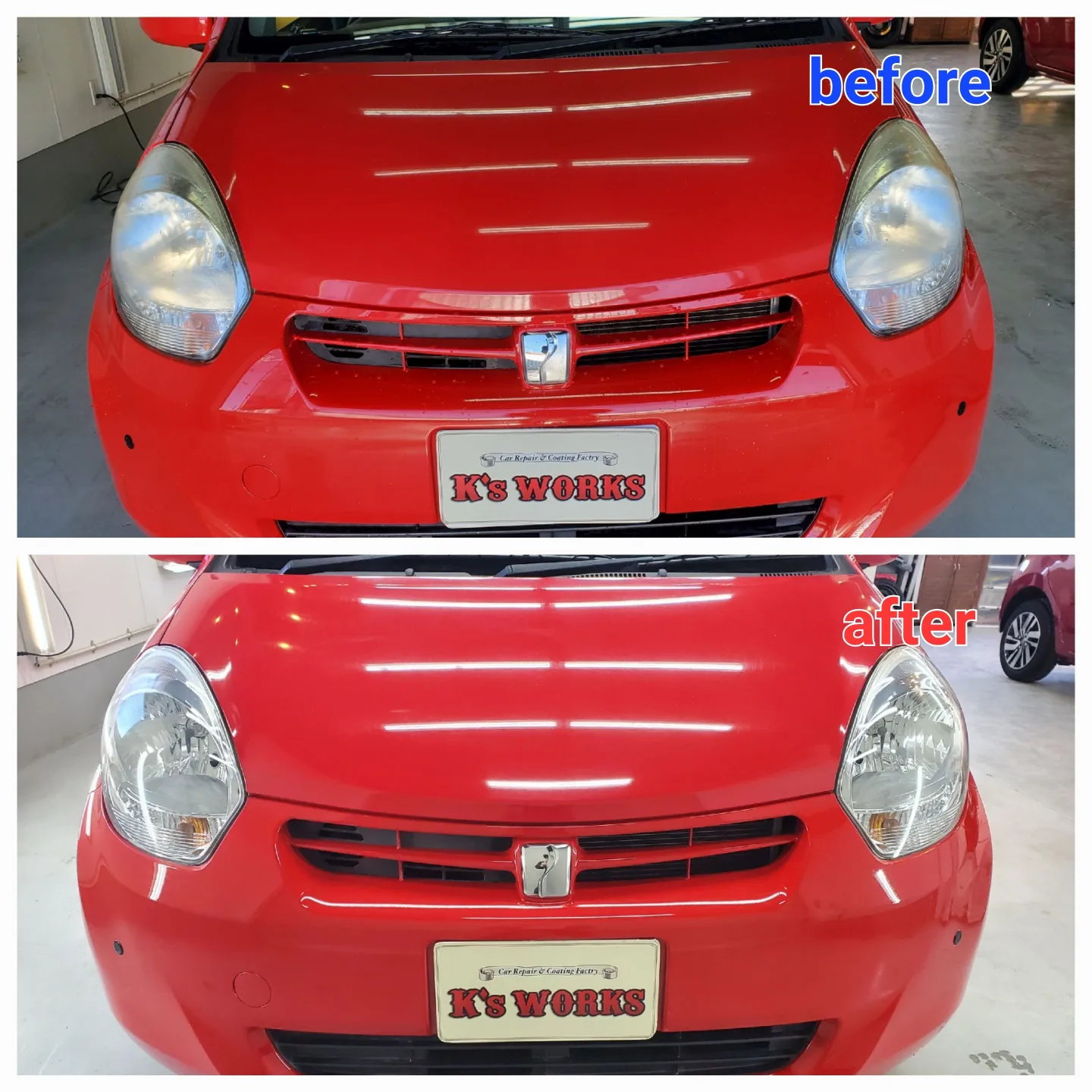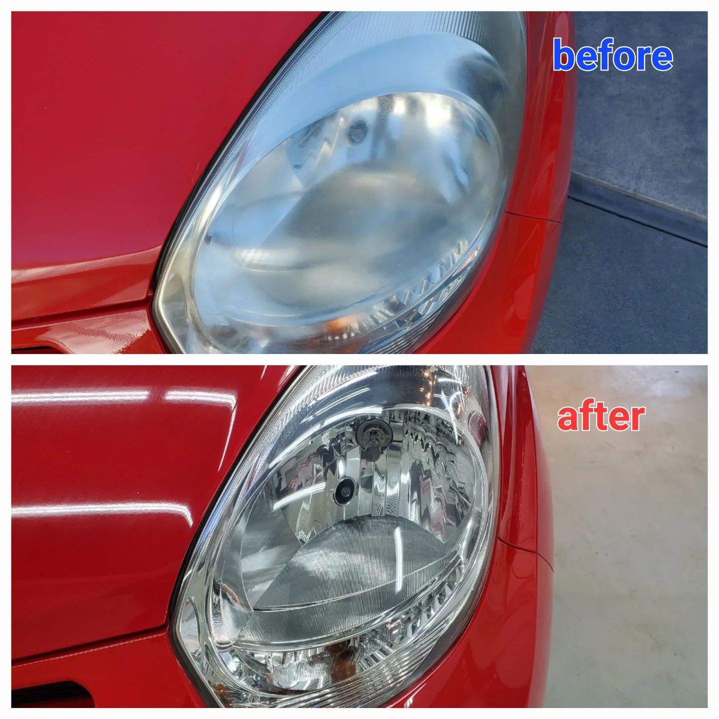 透明感が復活したヘッドライトを見たオーナー様から、仕上がりをとても喜んでいただきました。