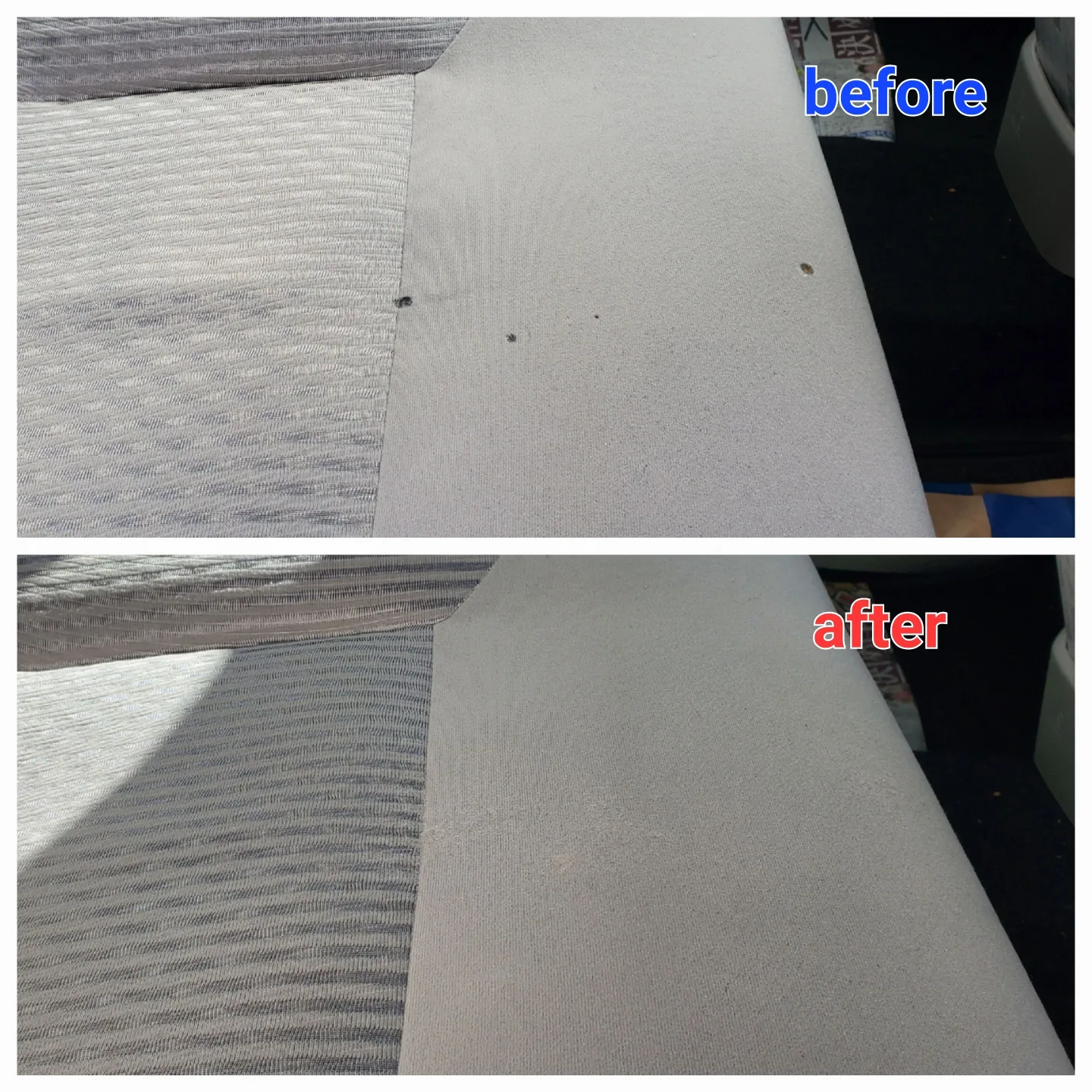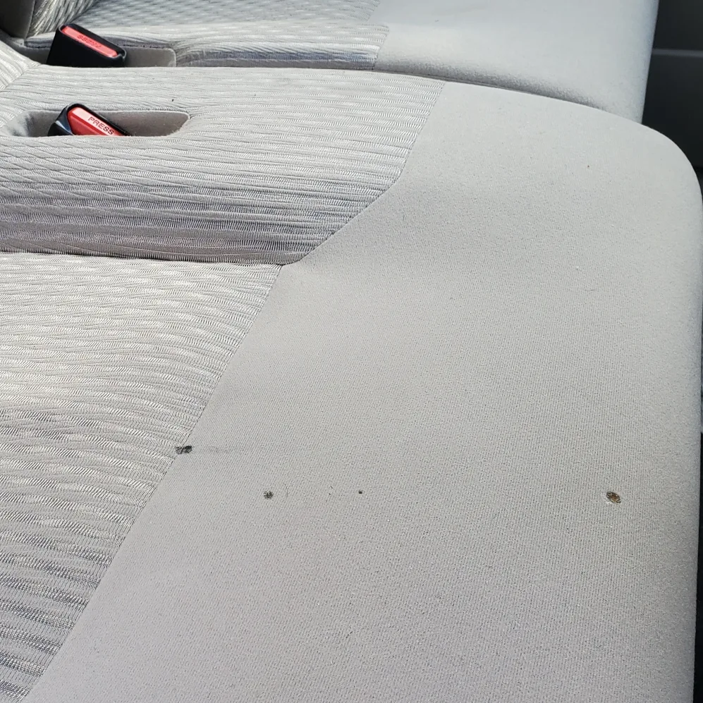 仕入れた車両のシートの座面にタバコによる焦げ穴が出来てしまっていて お困りの自動車販売店様より出張施工のご依頼をいただきました。
