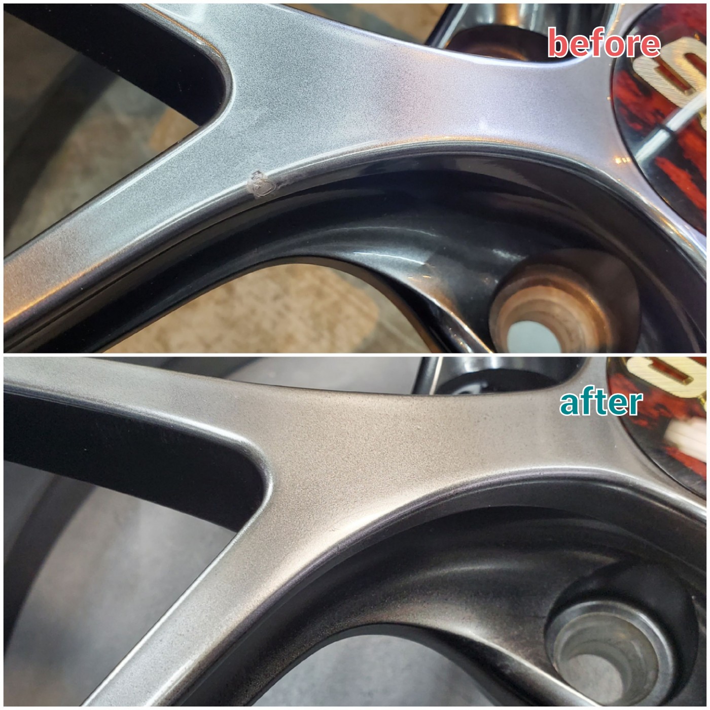 縁石に寄せすぎてガリ傷を付けてしまった客様からのご依頼で、ダイヤカット仕上...